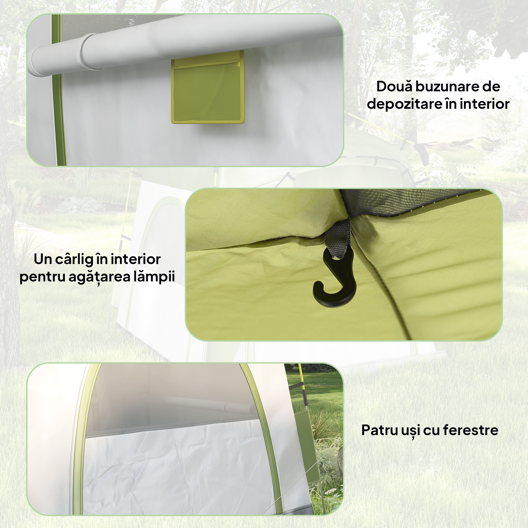 Camp with plenty of space - do it with this Outsunny 4 person tent. It's easy to unfold and set up: featuring pre-attached poles and a hydraulic pressure mechanism, the family tent pops open up easily for a fuss-free set up - also easy to fold up too. The 190T polyester shell protects against light weather for use from Spring to Autumn. This 4 man tent features three windows to let air in, with the large front door making it easy to enter and leave. Comes with carry bag and eight ground stakes.