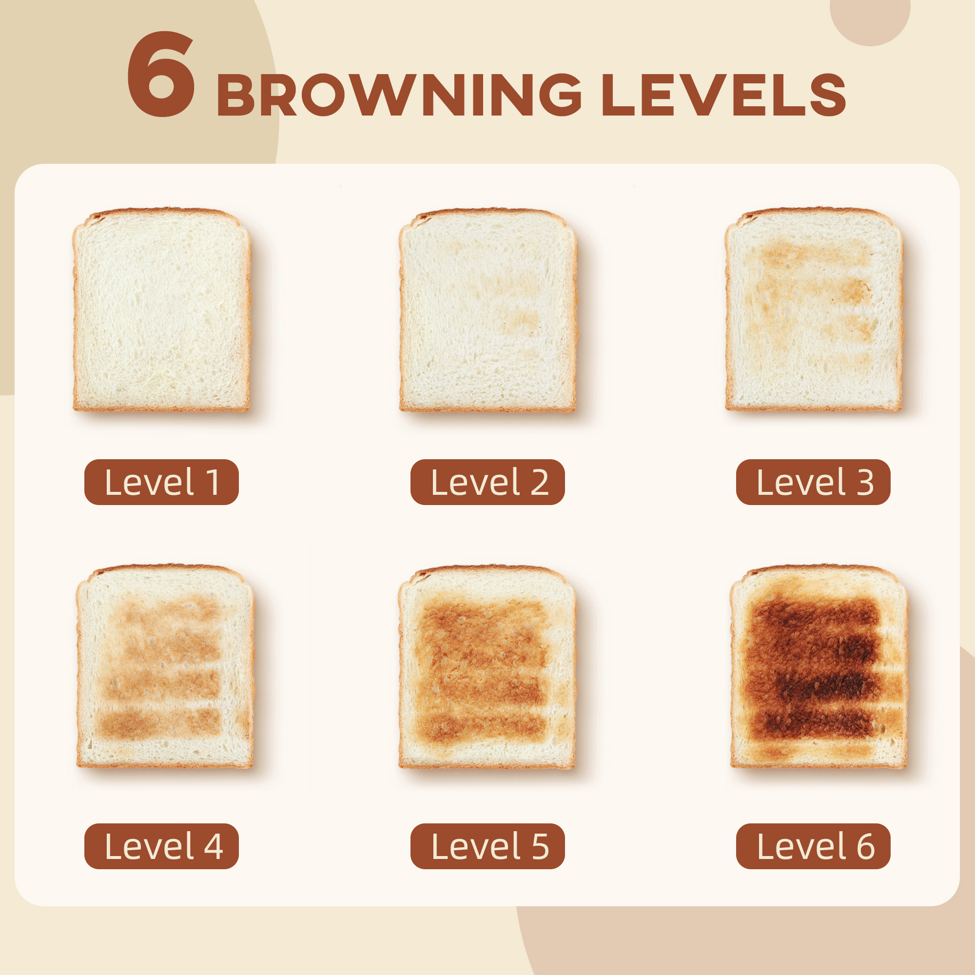 - Toaster features six browning controls for great toast every time