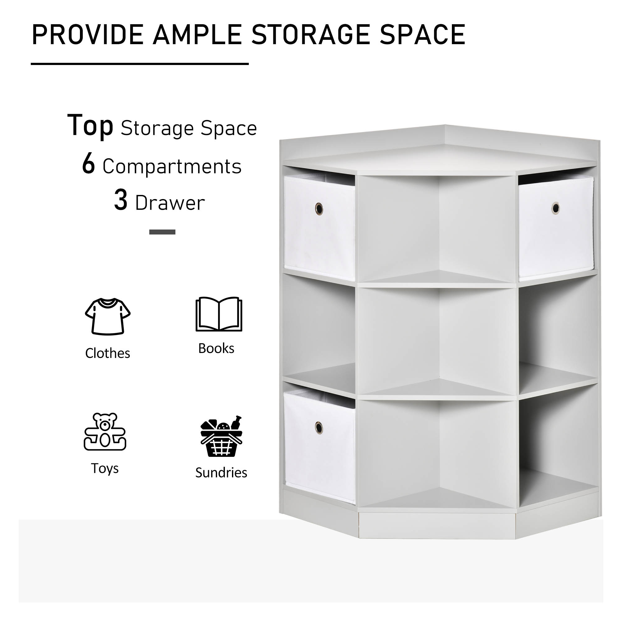 Maximise your space with the HOMCOM kids book shelves, cleverly designed to fit snugly into any corner. This charming piece doubles as a toy storage organizer and storage shelves for bedroom, featuring nine compartments and three drawers to keep books and toys tidy. Crafted from MDF, its smooth surface is easy to clean, making it a practical addition to any child's room.