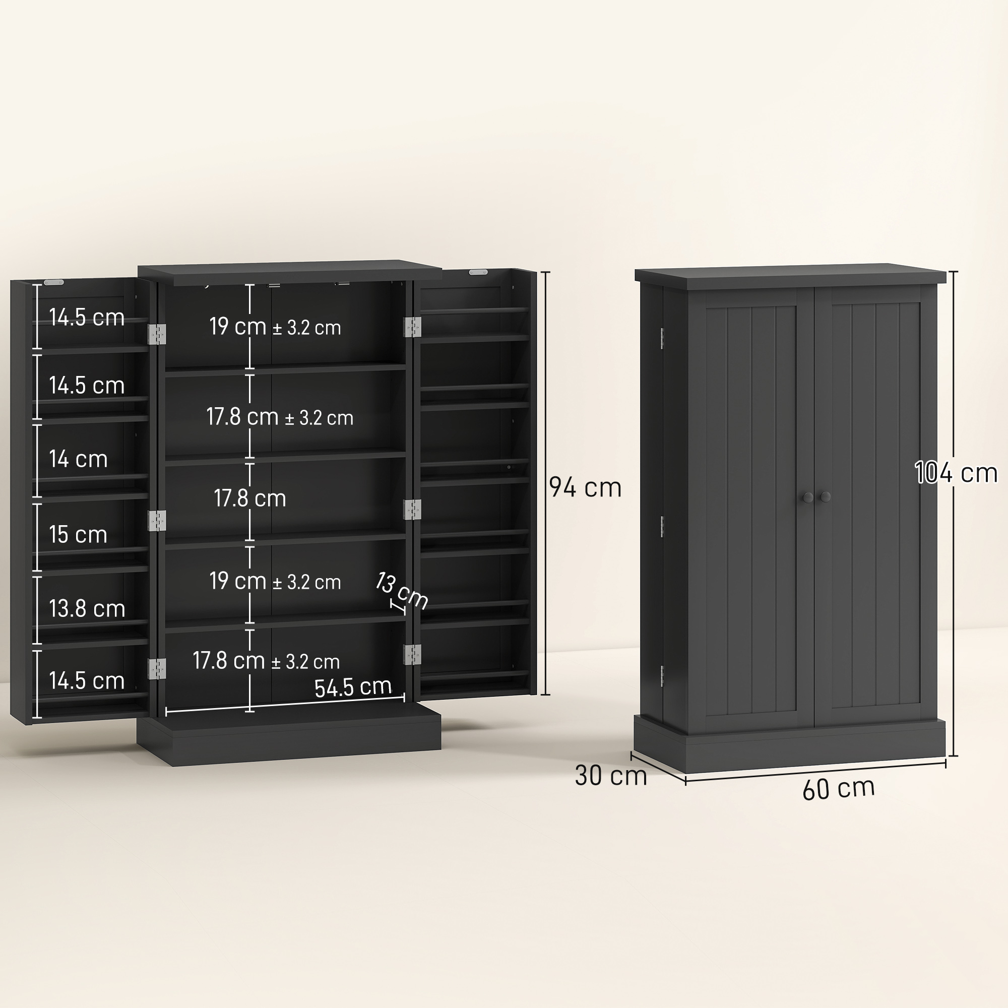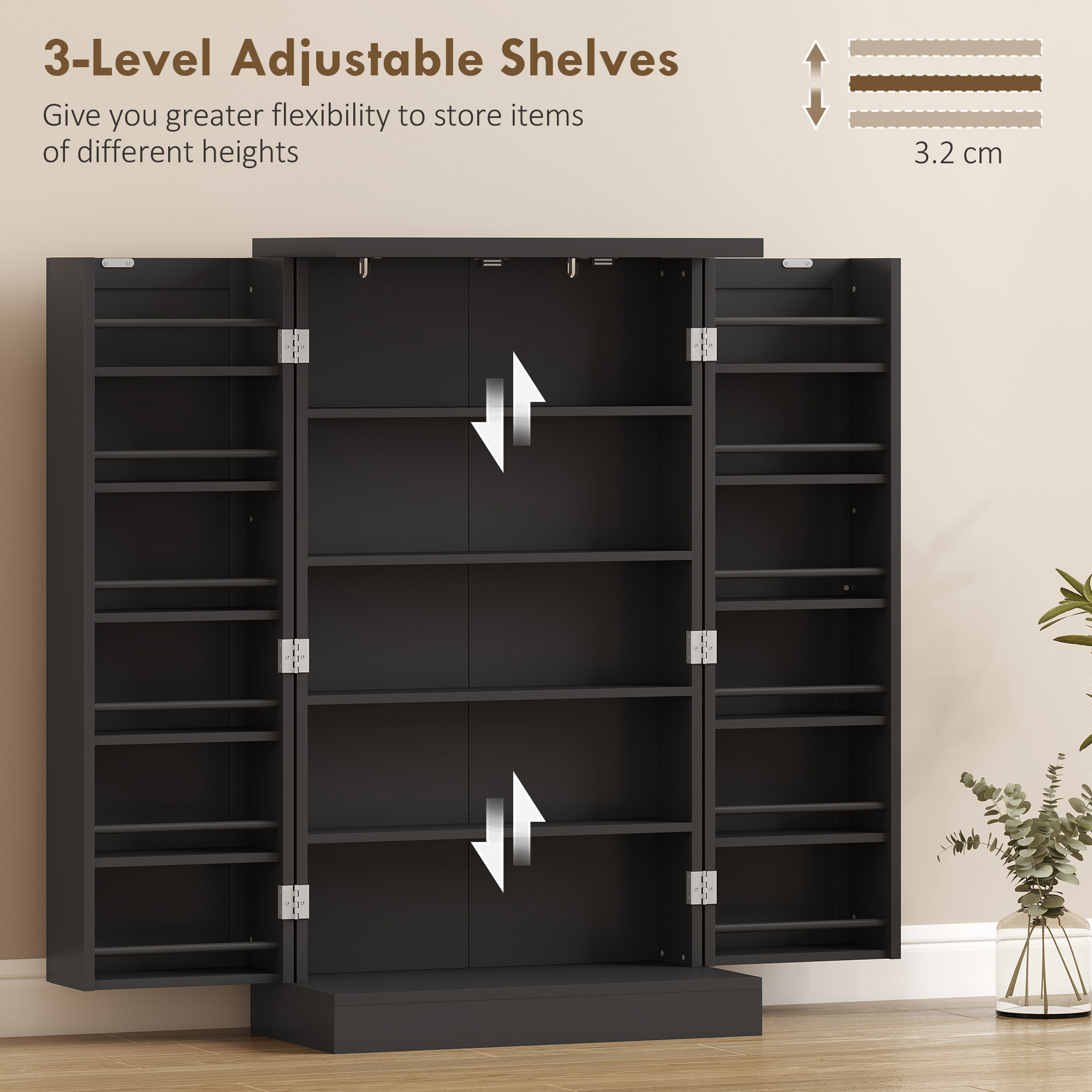 This HOMCOM kitchen cupboard is a great solution for keeping all jars, bottles and more in one place. Featuring a duo storage design, this storage cabinet offers a middle five-tier shelf and six-tier door racks on each side of the doors—great for organising all your essentials. The adjustable shelves let you customise the space for taller bottles or smaller tins. Stainless steel hinges ensure smooth access, while anti-tipping straps keep it secure.