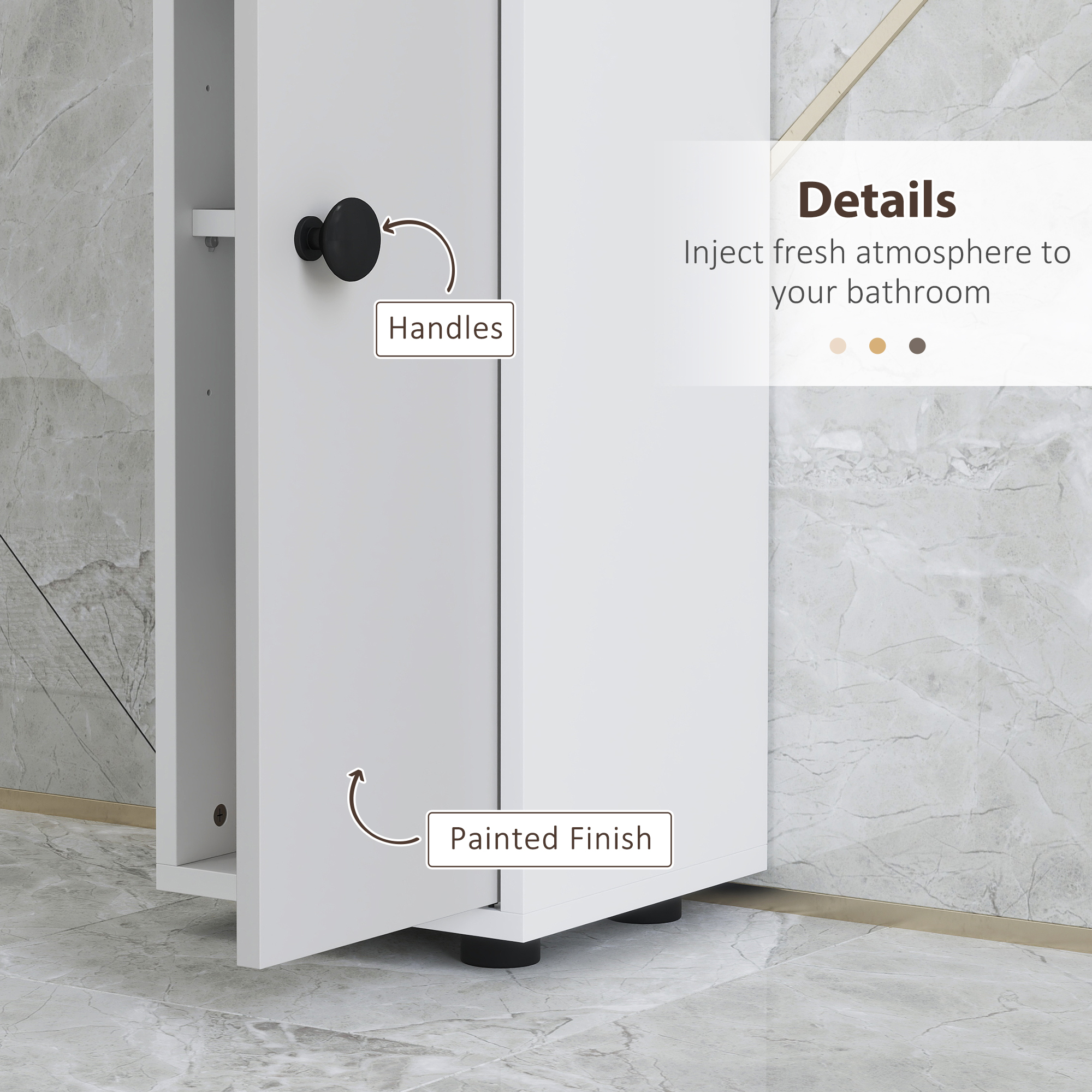 Small bathrooms are always in need of efficient storage. With this kleankin cabinet, you get exactly that. The 180 x 20 cm size makes it a tall, narrow piece; featuring a top and bottom cupboard, drawer and four open shelves, it provides plenty of storage for bathroom essentials. The particle board structure is solid, with a melamine coating for light protection against everyday wear. The clean light grey design gives it a modern, versatile look.