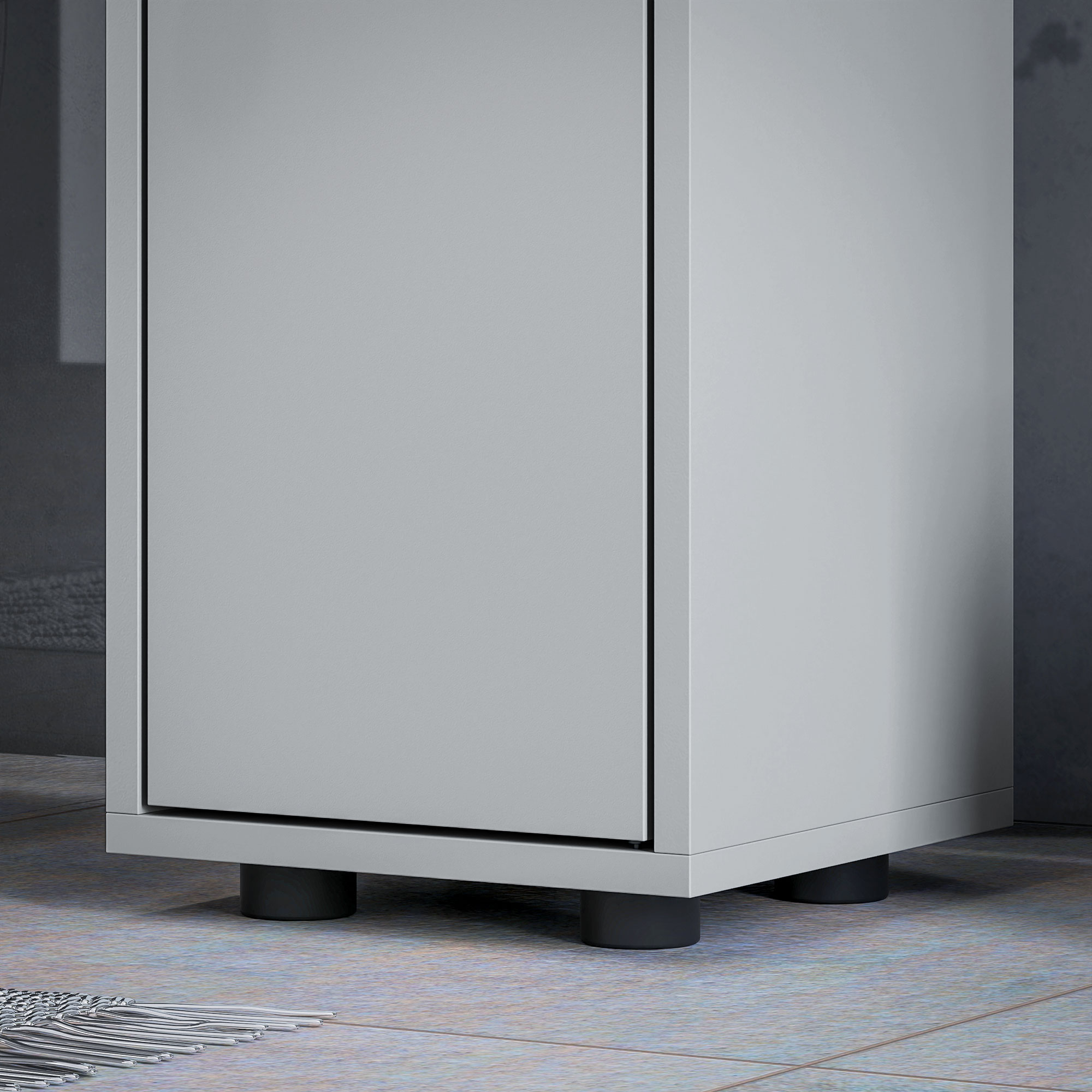 Small bathrooms are always in need of efficient storage. With this kleankin cabinet, you get exactly that. The 180 x 20 cm size makes it a tall, narrow piece; featuring a top and bottom cupboard, drawer and four open shelves, it provides plenty of storage for bathroom essentials. The particle board structure is solid, with a melamine coating for light protection against everyday wear. The clean grey design gives it a modern, versatile look.