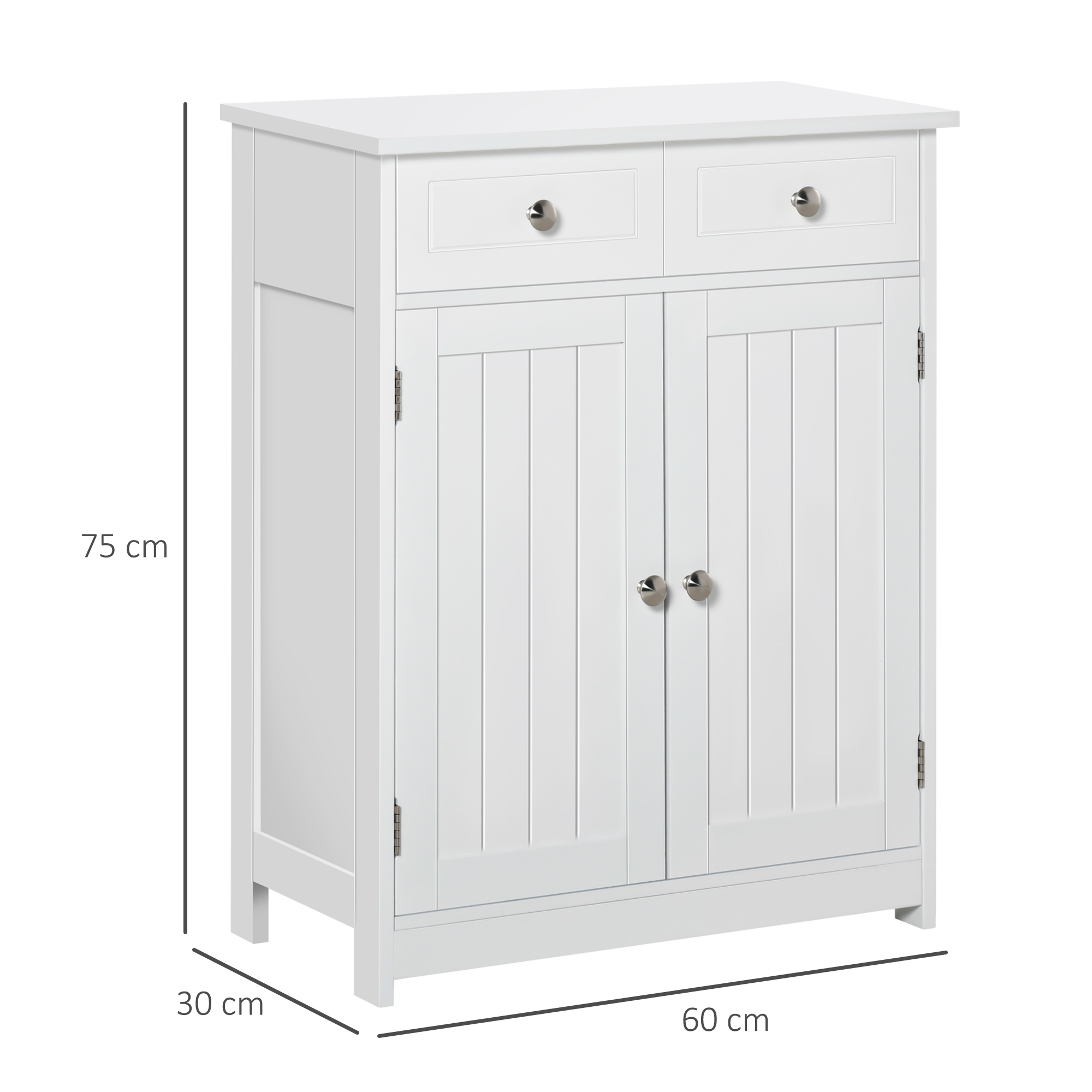 Opt for a more traditional aesthetic in your home with this bathroom cabinet from kleankin. The colour pairs effortlessly with the carved indents and sleek, polished handles. Two drawers and a bottom cabinet with a shelf offer plenty of room for your bathroom essentials. The structure is tough and durable. The back can be attached to the wall for anti-tipping safety, making it suitable for homes with children and pets present. Bringing some handy space in the most beautiful way possible.