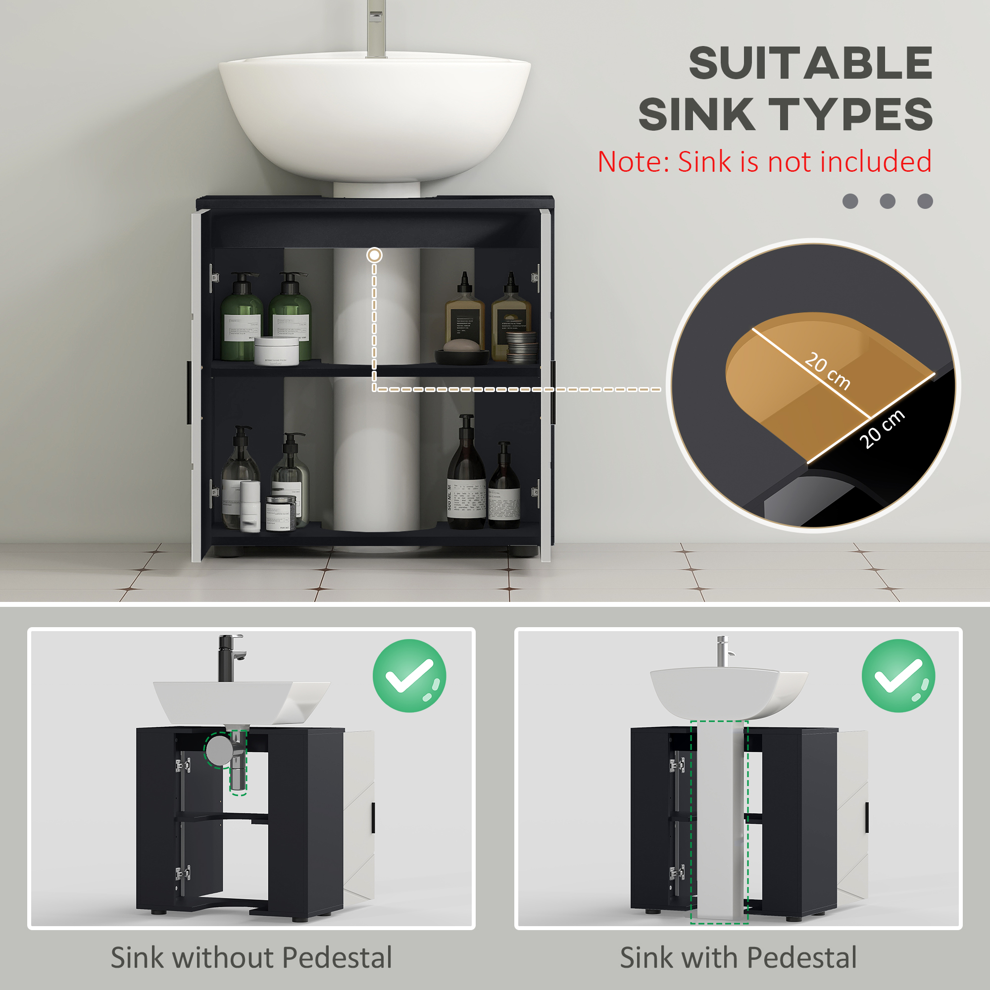 Transform your compact living space with the kleankin under-sink bathroom cabinet, designed for those who seeking smart storage solutions. This sleek cabinet fits seamlessly beneath your sink, utilizing often-overlooked space. With an adjustable inner shelf, it offers versatile storage for your essentials, adapting to various item sizes. Ideal for small apartments, its anti-tipping straps ensure safety, making it a perfect blend of functionality and style for modern, space-conscious living.