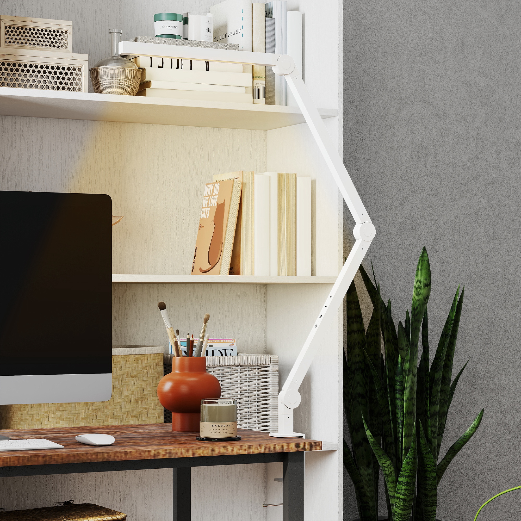 - Extra-long swing arm easily illuminates large desks and dual monitors