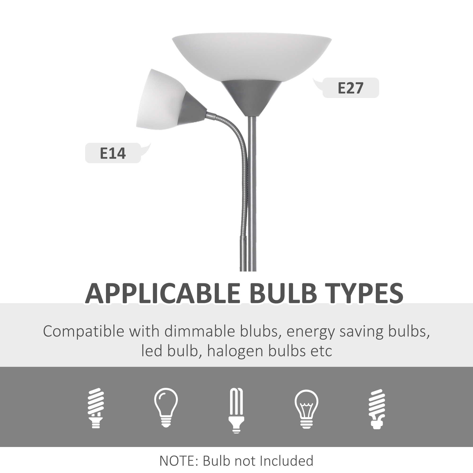 Bring double the elegance to your home with this HOMCOM mother-and-child floor lamp. It features two lights: a top uplighter and a flexible mid-arm reading light—optimal for evenings (bulbs not included). The robust metal frame offers durability, while cone shades protect from accidental contact with hot bulbs. Two separate switches let you control each light independently.