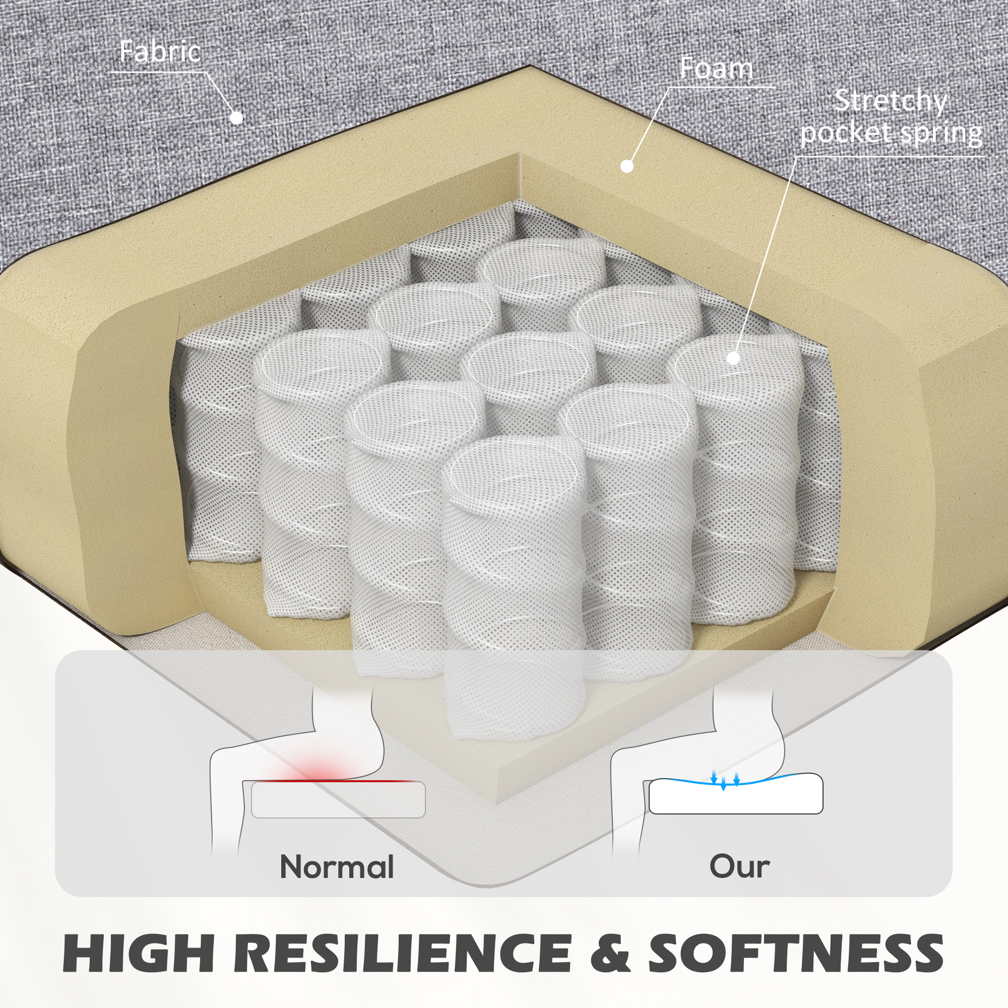 - Pocket spring system in seat cushion to retain the shape