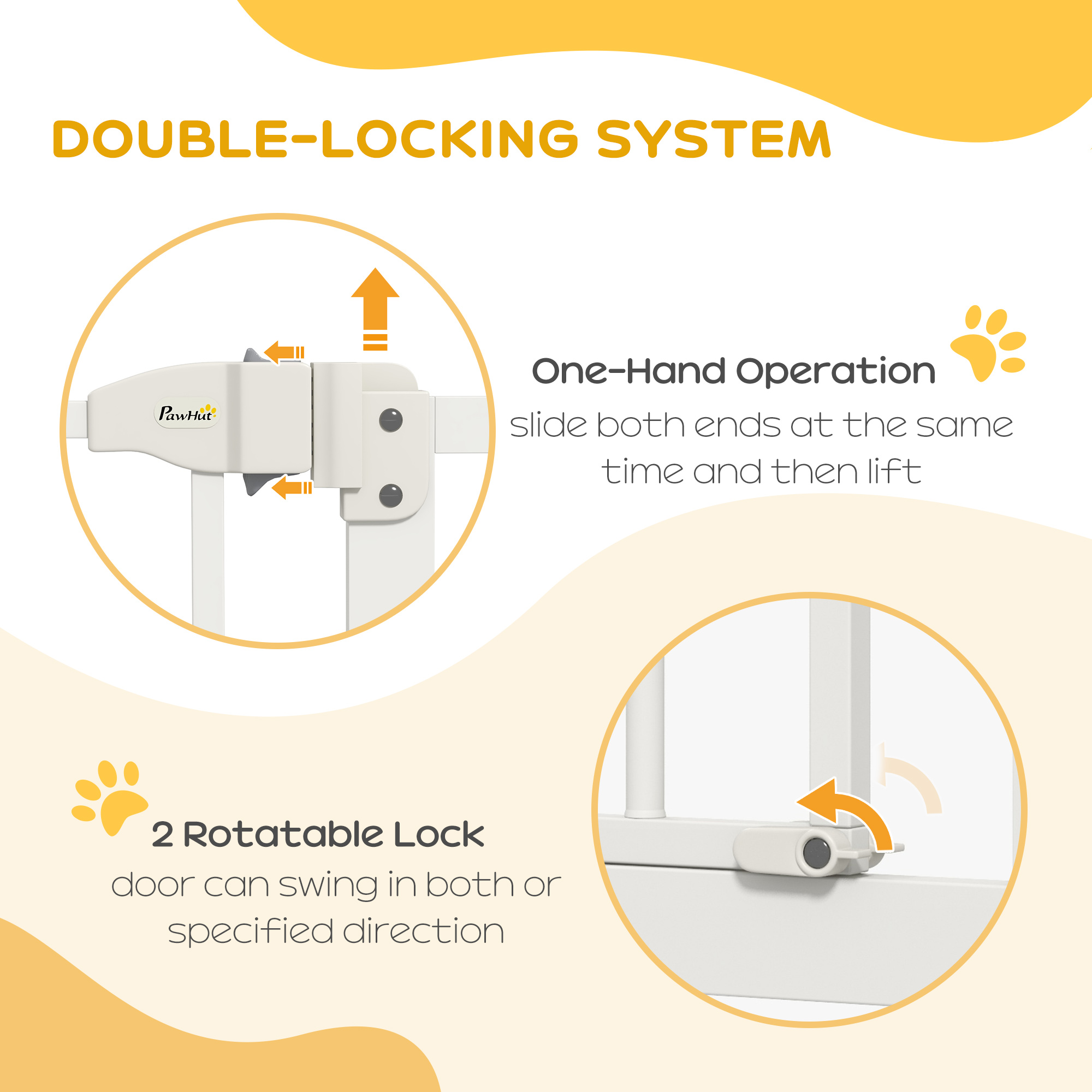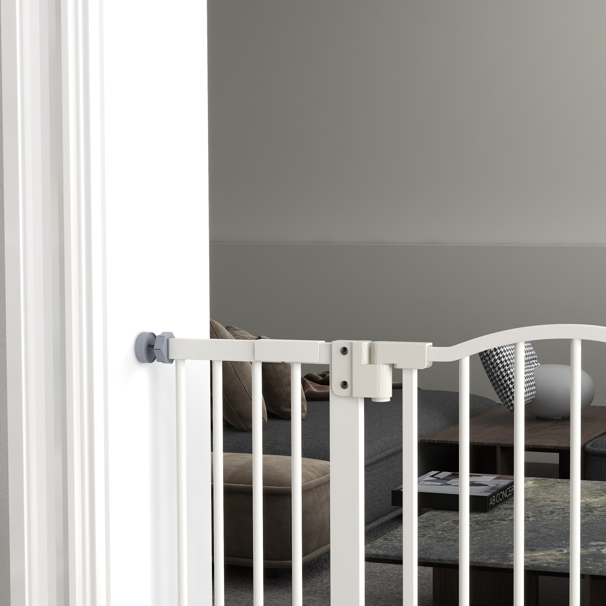 Keep pets away from specific places easily with this safety gate from PawHut. It's made from metal for strength and its width can be adjusted between 74cm and 100cm, meaning it will fit properly in door frames and other passages. Fitted with a middle door to pass when needed, the slide-and-lift handle is easy to use so you can walk through quickly. Two rotating locks on the bottom allow the door to opened both ways, with a double locking mechanism to finish for extra safety.