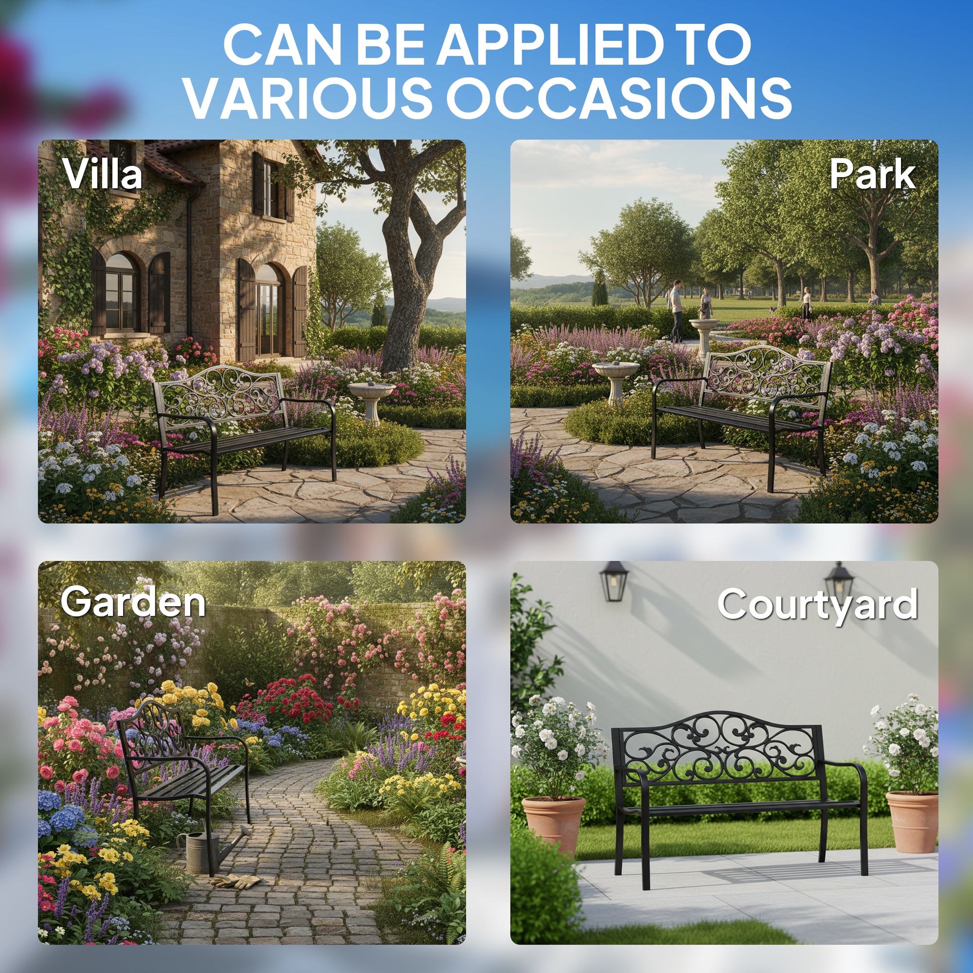 - Rust-resistant powder-coated metal finish for outdoor use