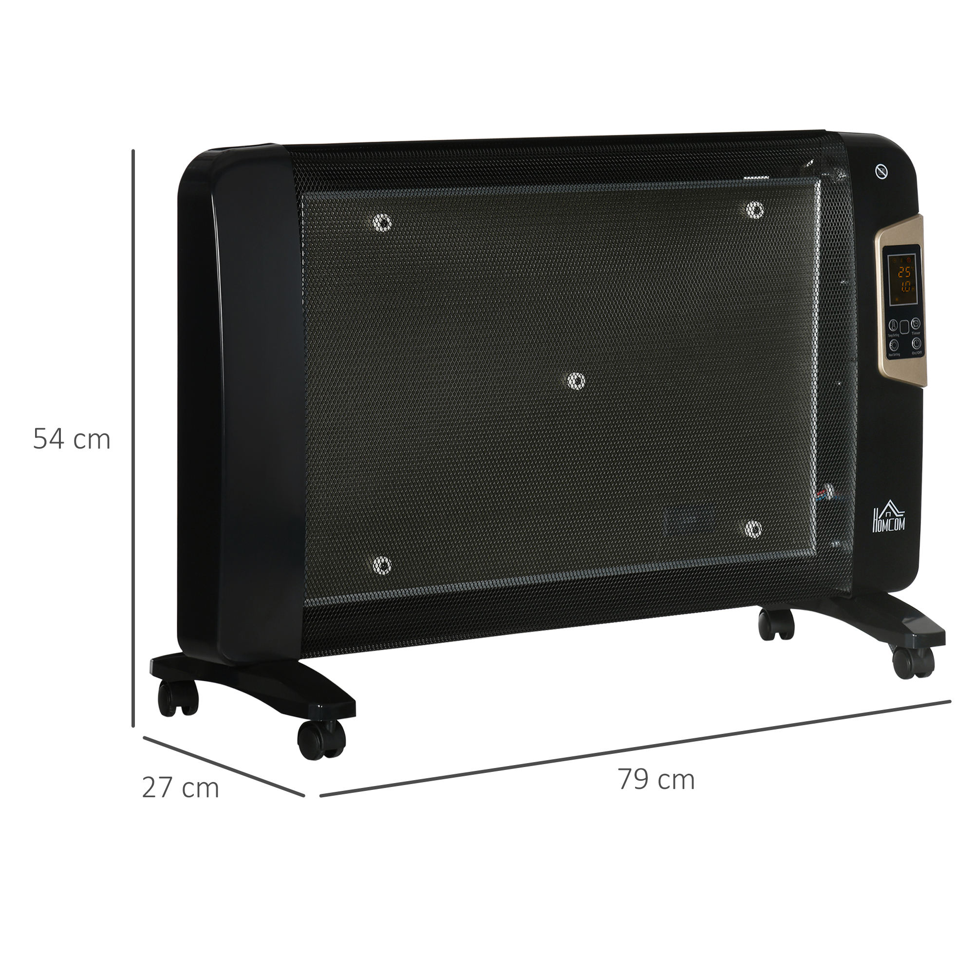 - Insulated Mica-glass panels keep you protected from touching the heat