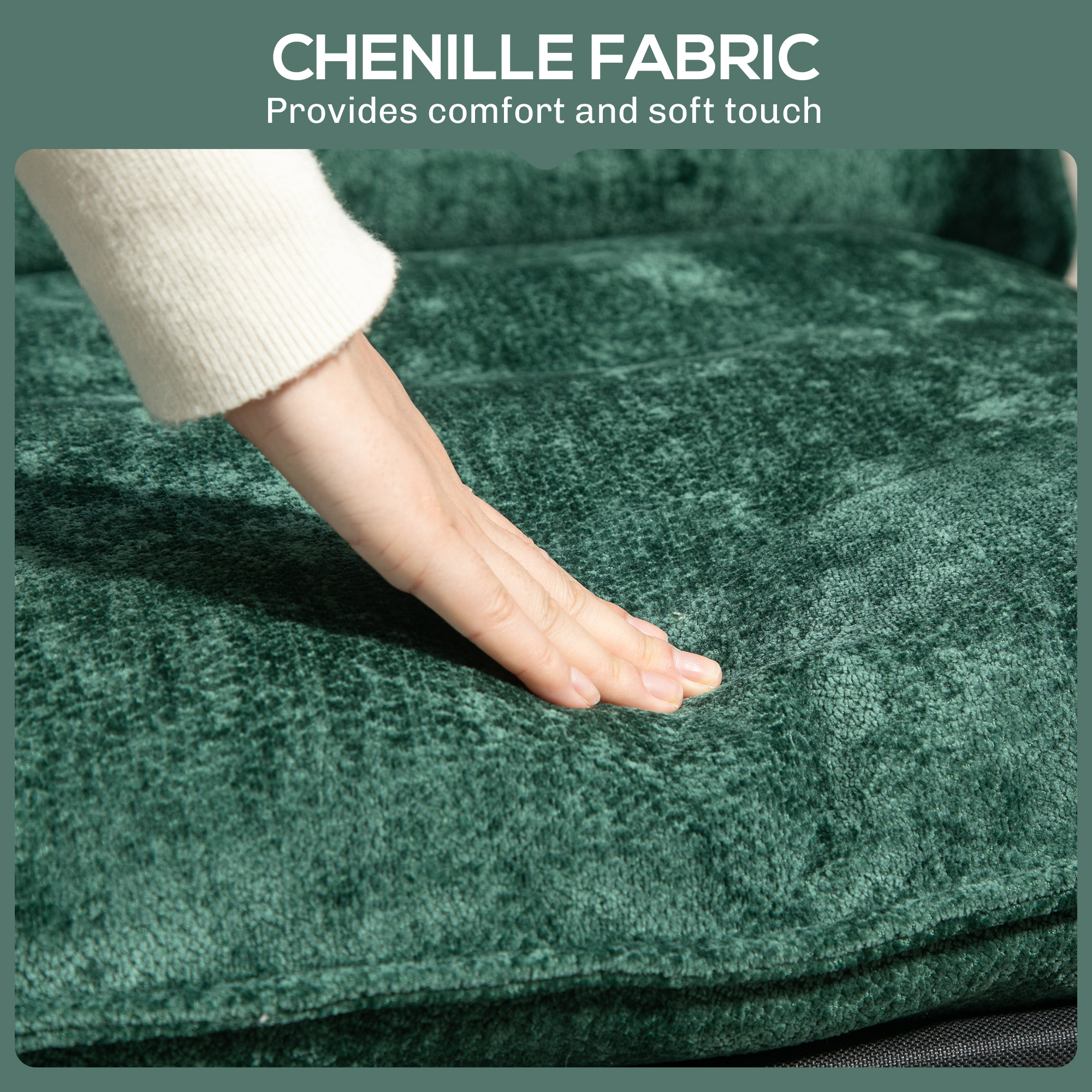 - Material: Chenille (100% Polyester), PP Cotton, Steel