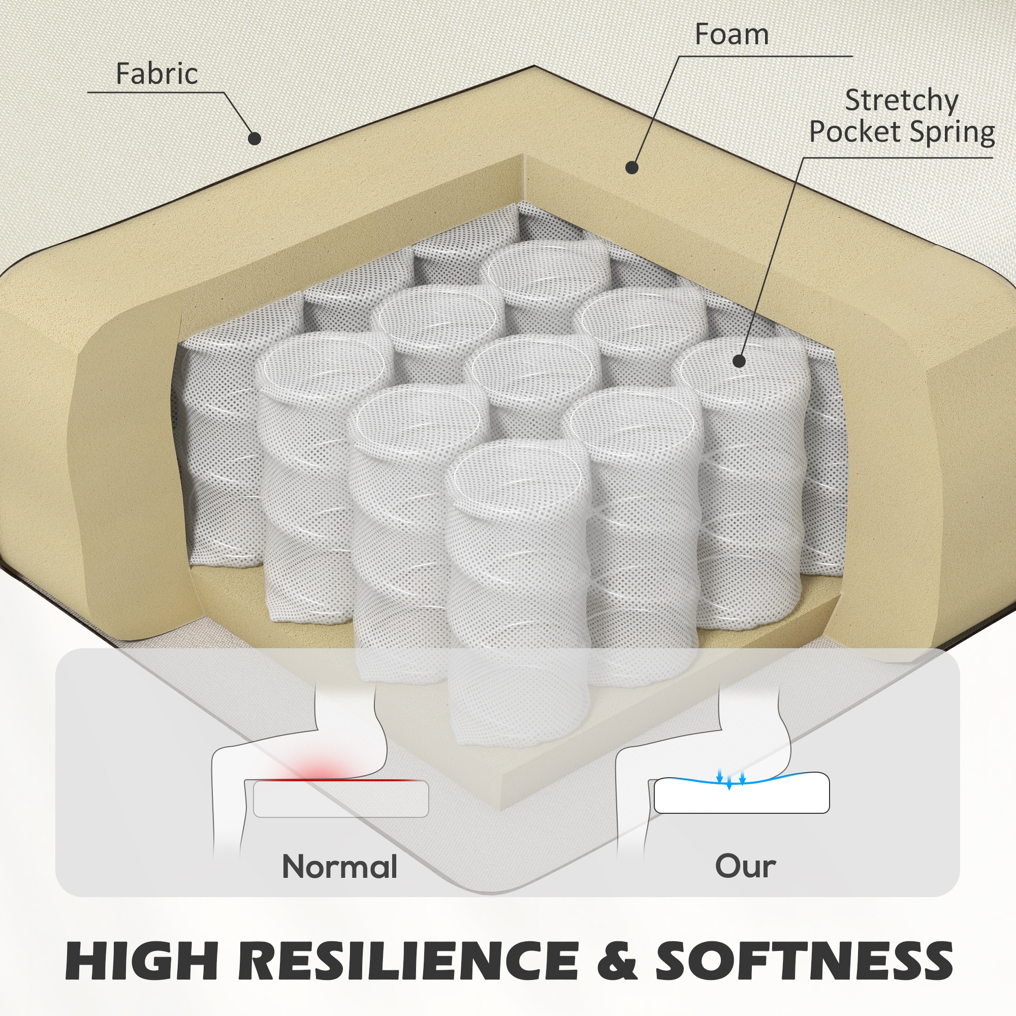 - Pocket spring system in seat cushion to retain the shape