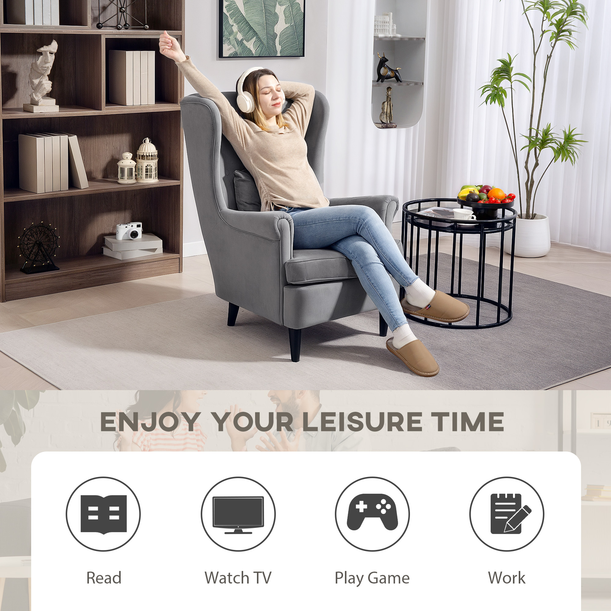 Sink into the luxurious comfort of the HOMCOM occasional chair, featuring a high-density sponge for long-lasting support. Upholstered in skin-friendly velvet for improved breathability, this armchair showcases a 70 cm high wingback design and a removable, washable pillow cover. Suitable as a lounge chair in the bedroom or a reading chair in the living room, it adds a stylish touch to any cosy corner.