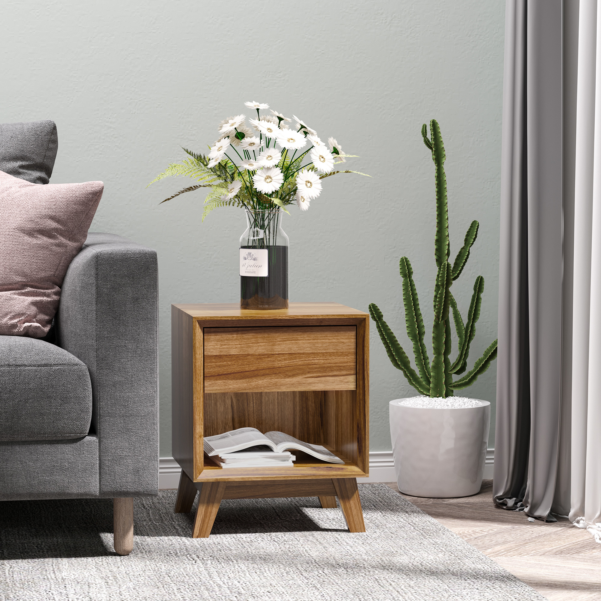 A classic approach to bedtime storage starts with this night stand from HOMCOM. Comes with both a top drawer and bottom shelf for keeping your essentials close. Made from MDF, the bedside table with drawer is durable and sturdy, finished in a beautiful wood effect. Fitted with four angled legs for balance. An effortless way to bring style and space into your beautiful space.