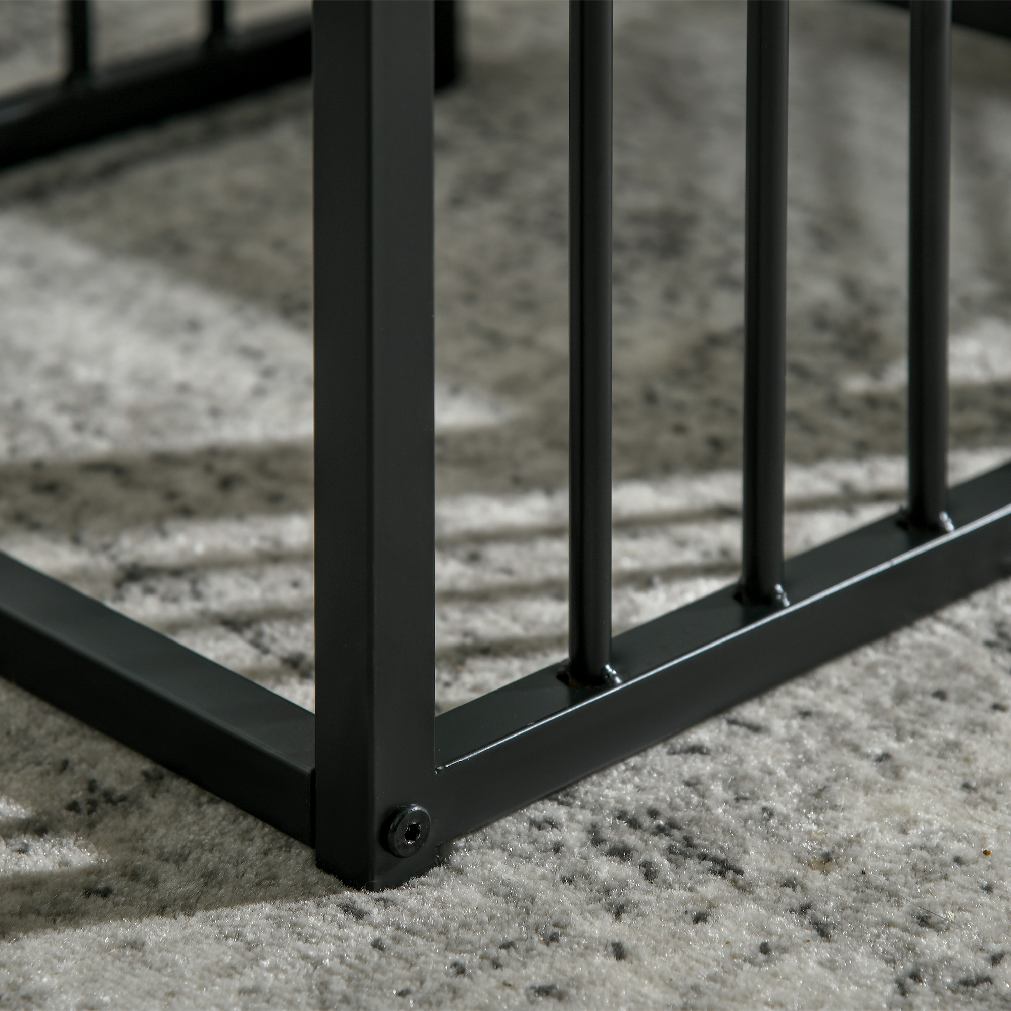 A marble coffee table set from HOMCOM modernises your home. Two tables – a tall table, which can be used as a nightstand or end table, whilst the small table is wide and makes a great coffee table; tuck the small table under the other to save space. Its white and black appearance is super stylish, which has an easy-to-clean MDF surface to maintain that good look. There's a bottom shelf to keep things organised and tidy, making it a piece that brings elegance and usefulness to your living space.