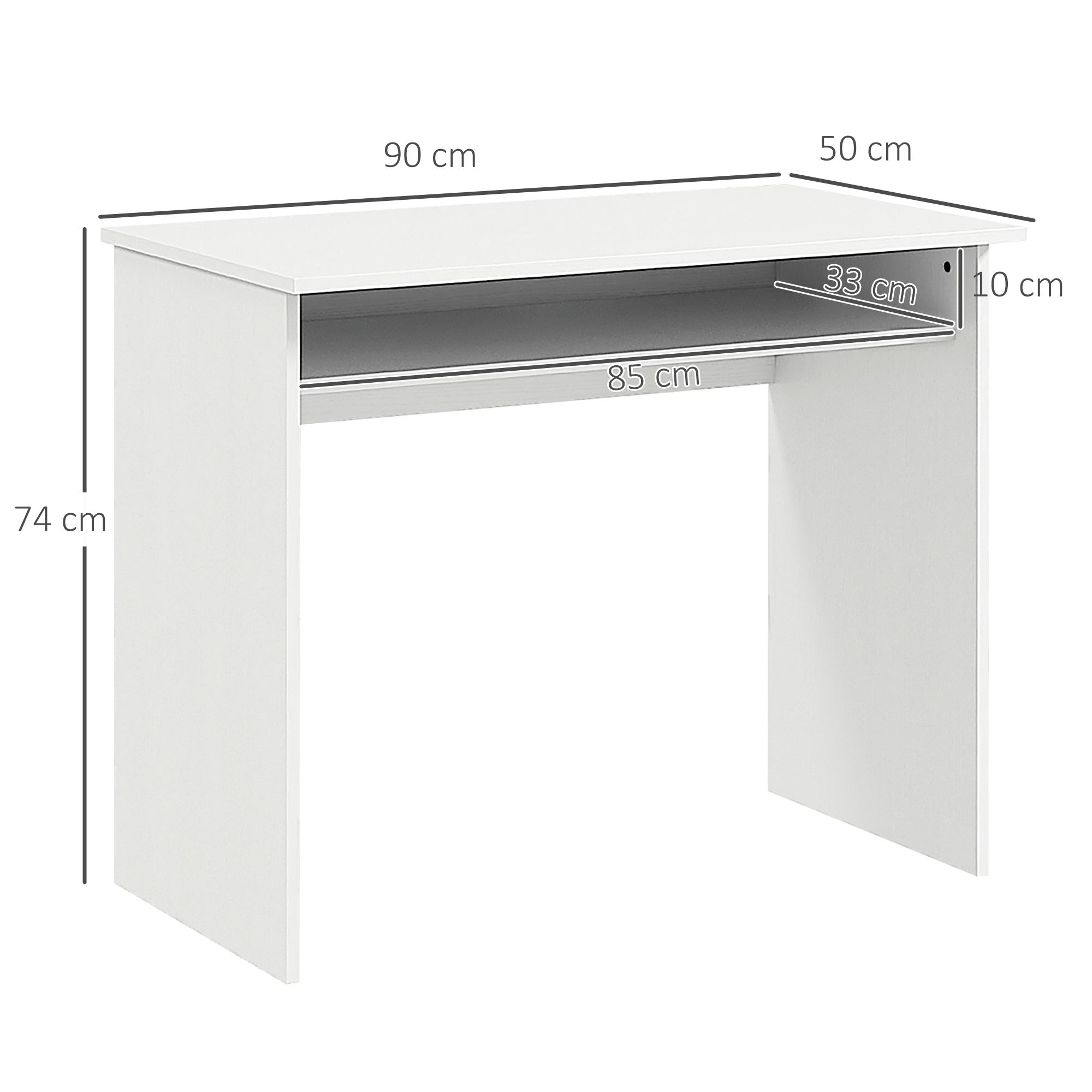 Whatever the role, this HOMCOM computer table is here for you. The 90cm long design is compact: great for smaller spaces. With a small under-desk shelf, there is room for keeping smaller work things close to you. Made from particle board, this desk is robust - suitable for everyday use. Enjoy working in simple style with this HOMCOM writing desk.