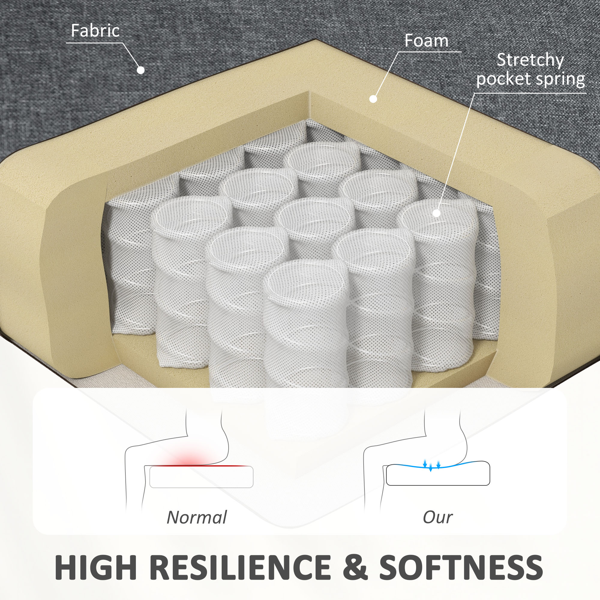 - Thick padding with pocket springs for extra comfort and durability