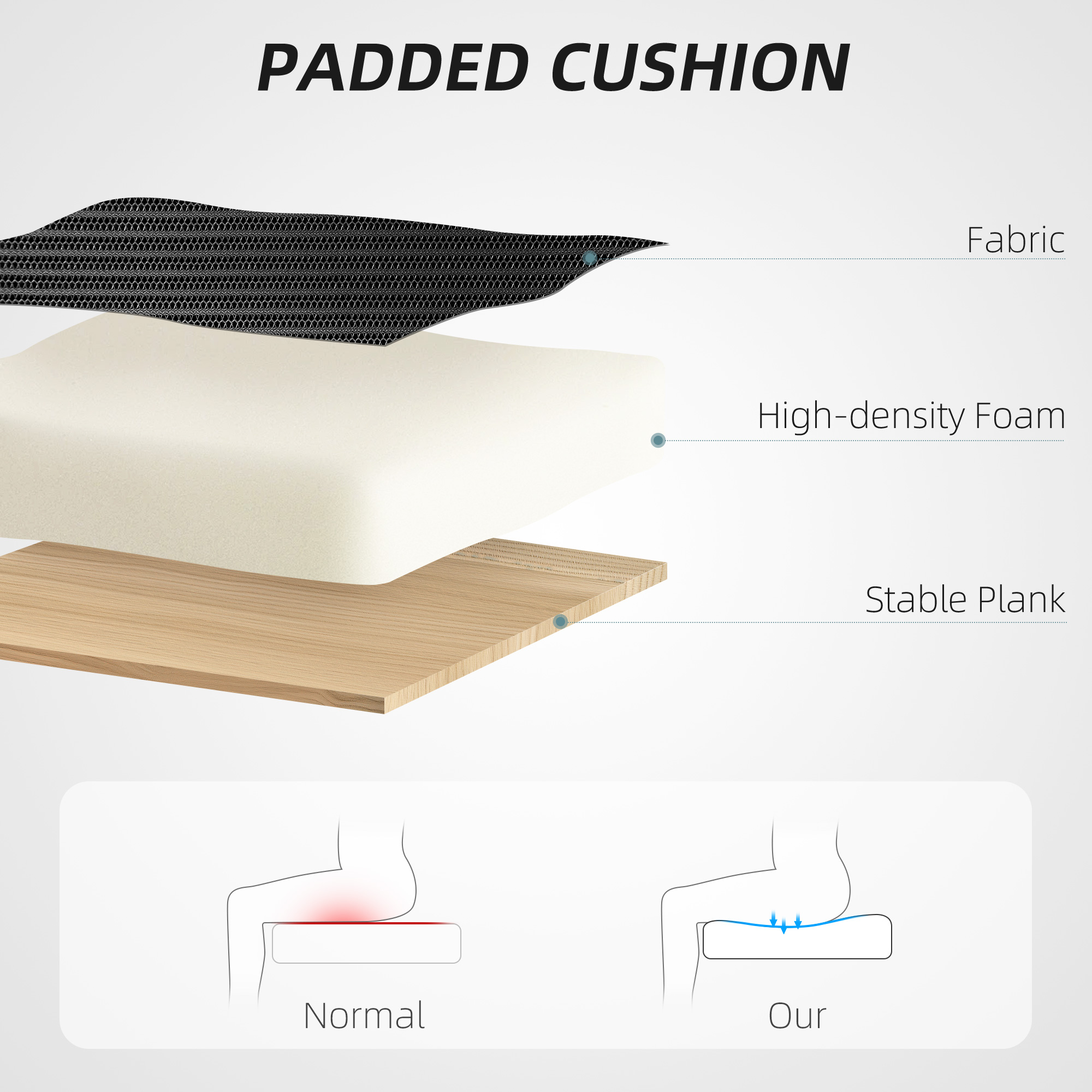 - High-density foam padding in seat for comfort