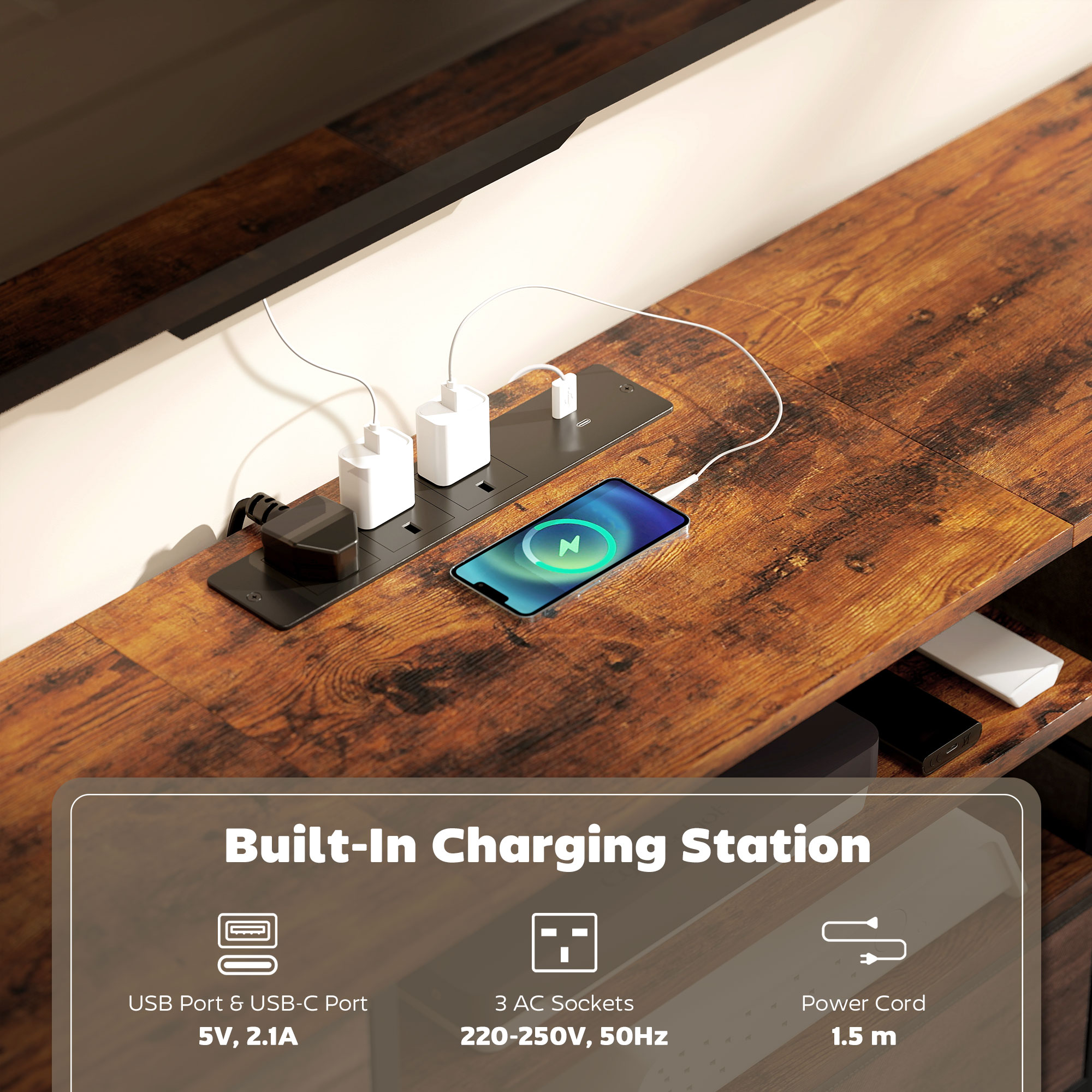 Features: - Three AC sockets and two USB ports are built in. Keeps devices powered at all times. No messy wires everywhere