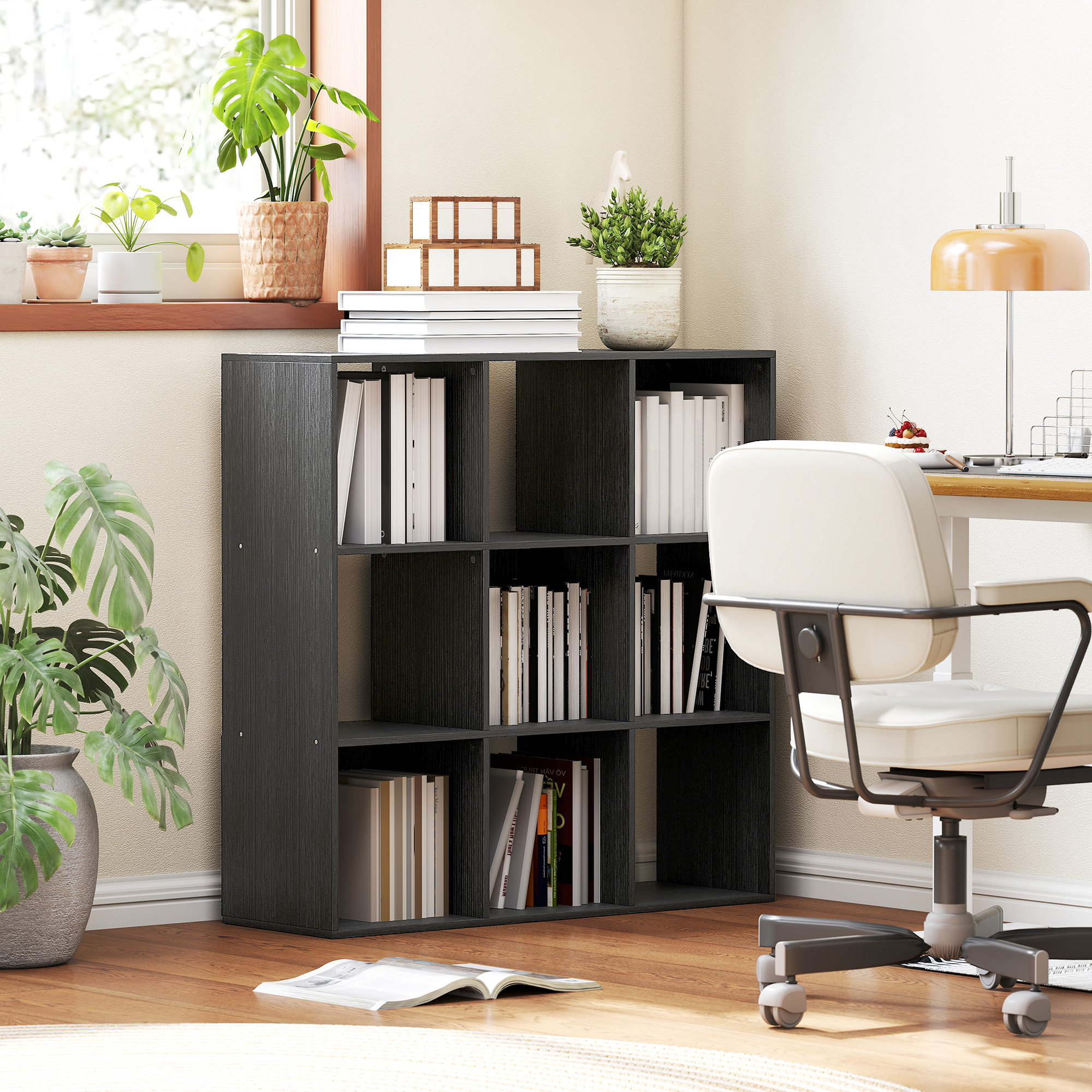 This HOMCOM storage cube unit is a simple piece: provides plenty of storage and looks great in plenty of spaces - making it ideal for all home and office spaces. Made from particle board, this is a sturdy piece suitable for everyday use. It is formed into a nine-cube design: there's plenty of room for showing off favourite pieces.