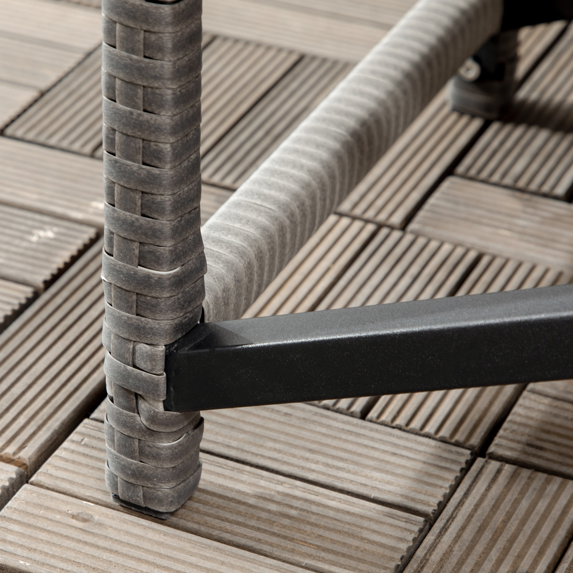 Whether as a drinks table or a resting spot for everything else, look to this Outsunny table for your outdoor times - this season and beyond. The metal frame comes with X-shaped frame. A rattan table top creates the garden style you love; its open and spacious size gives you plenty of holding room. Complete with foot pads to gently protect the floor.
