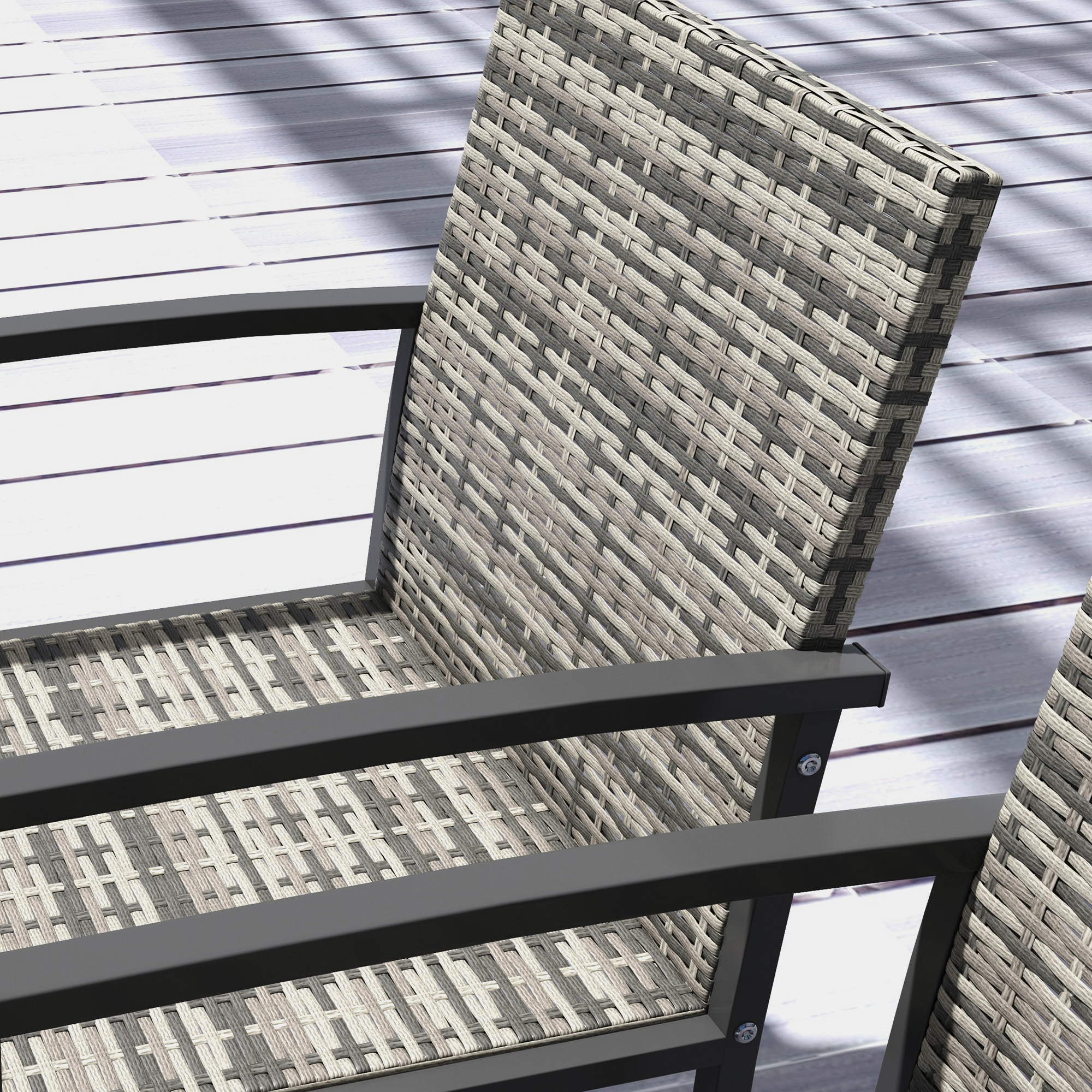 This Outsunny four-seater outdoor dining set is for every garden and patio. Four rattan-seated chairs and table is great for you and your favourite people to sit together. The glass-top of the table can be wiped clean quickly: a safe dining surface. Galvanised steel frames for strength. Plastic wicker woven into a rattan design: an on-trend garden look, for this season and beyond.