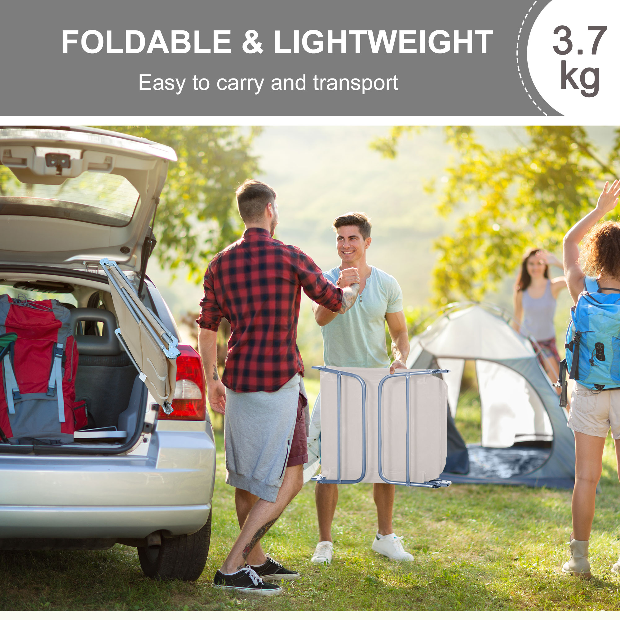 Relax anywhere if your choose, with Outsunny folding sun lounger. Powder coated steel frames mean a strong core, fitted with a soft fabric seat and pillow for comfort. Both feature a reclining back so you can relax to an angle of your choice. Simply fold up and carry to wherever you want.