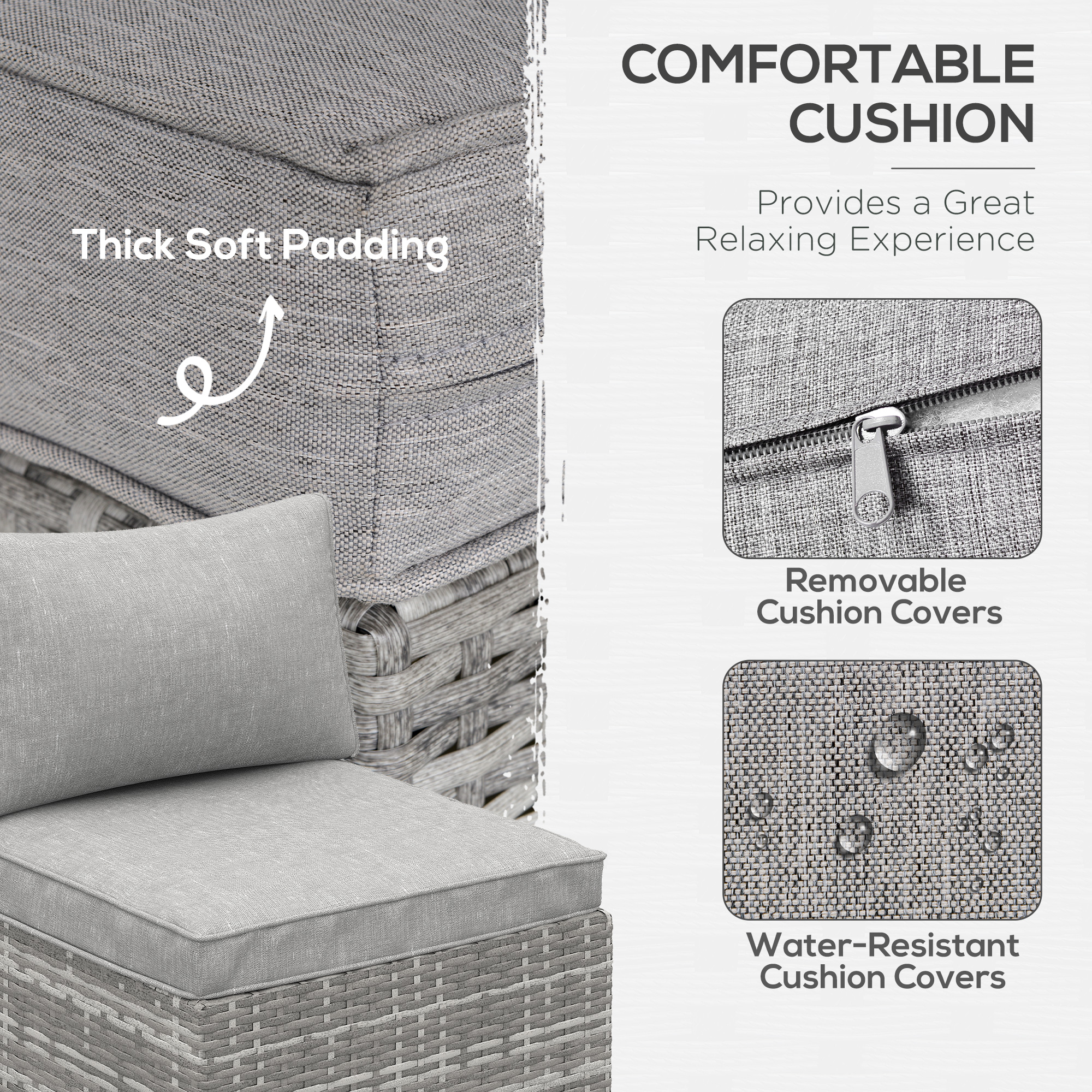 This modern and trendy outdoor patio furniture from Outsunny provides the user the unique reconfigurable design, offers exceptionally stunning outdoor relax and sit. This single armless chair made of PE rattan wicker and steel frame can be used alone or in combination. You can arrange the perfect shape to match your deck or garden. It is perfect for the pool side, deck or patio, its cushioned seat will let you and your guests to sit back, relax and enjoy the great outdoors.