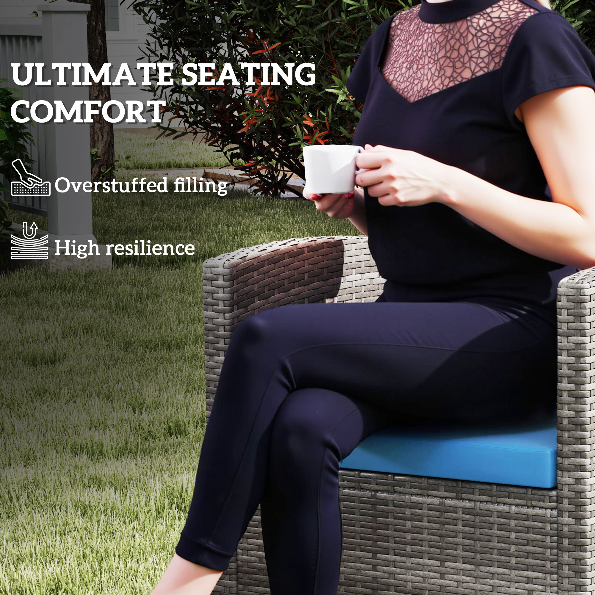 New comfort for your outdoor set: go for these three Outsunny replacement cushions for rattan furniture. Comes with three pieces: two single seat cushions and one double seat cushion. Each cushion is filled with thick cotton for comfort. The polyester covers of outdoor cushions for chairs are breathable and fade-resistant, with a zip fastening to remove and clean easily. Comfort and style in your garden done the new way.