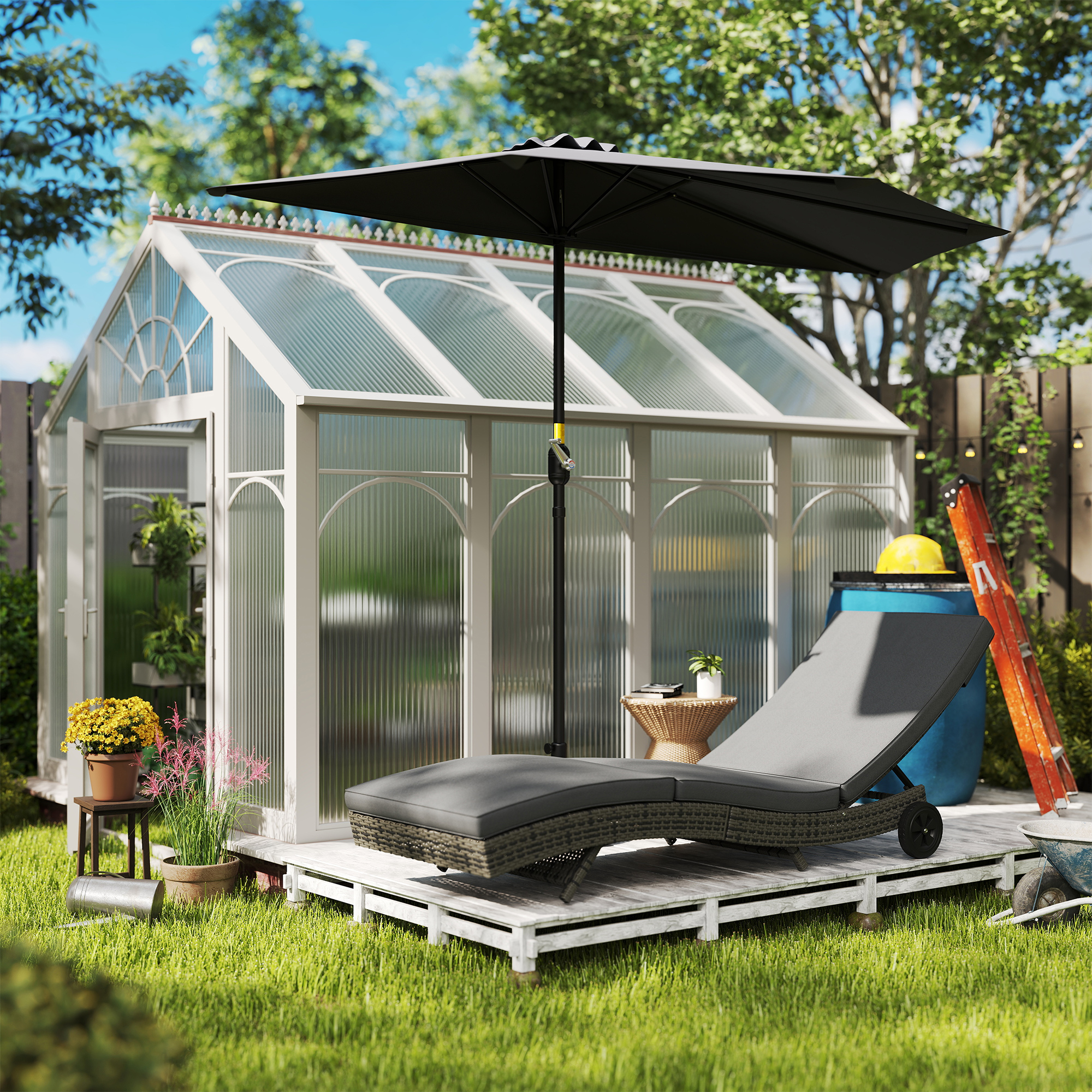 - Materials: Steel, Polyethylene Rattan, Polyester