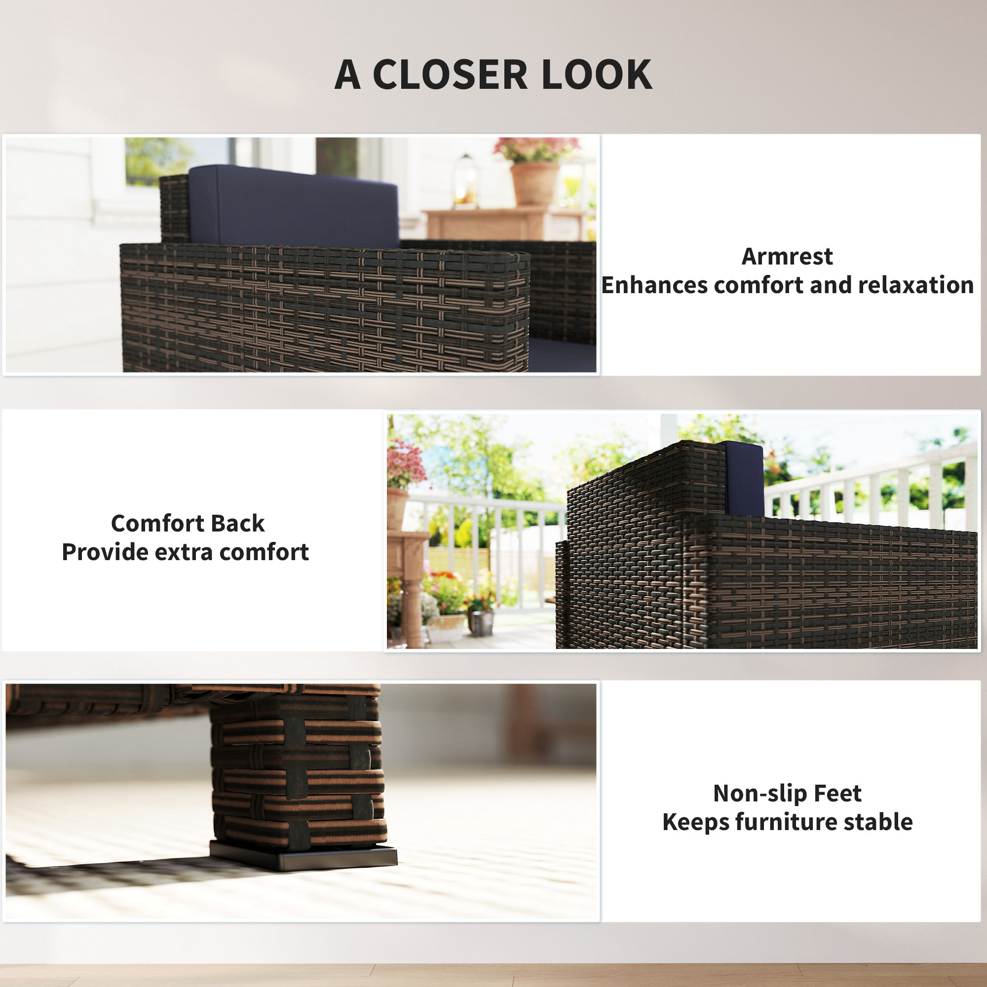- Material: Steel, PE Rattan, Polyester