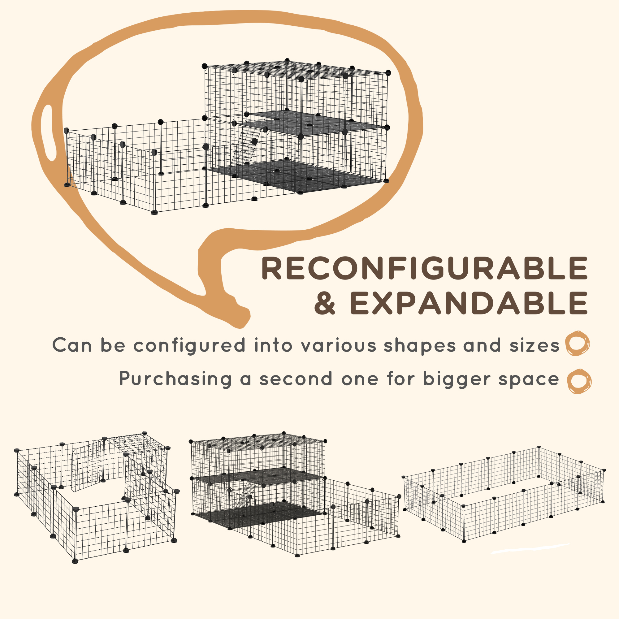 - This small animal playpen can be configured into various shapes and can be bigger by purchasing a second cage