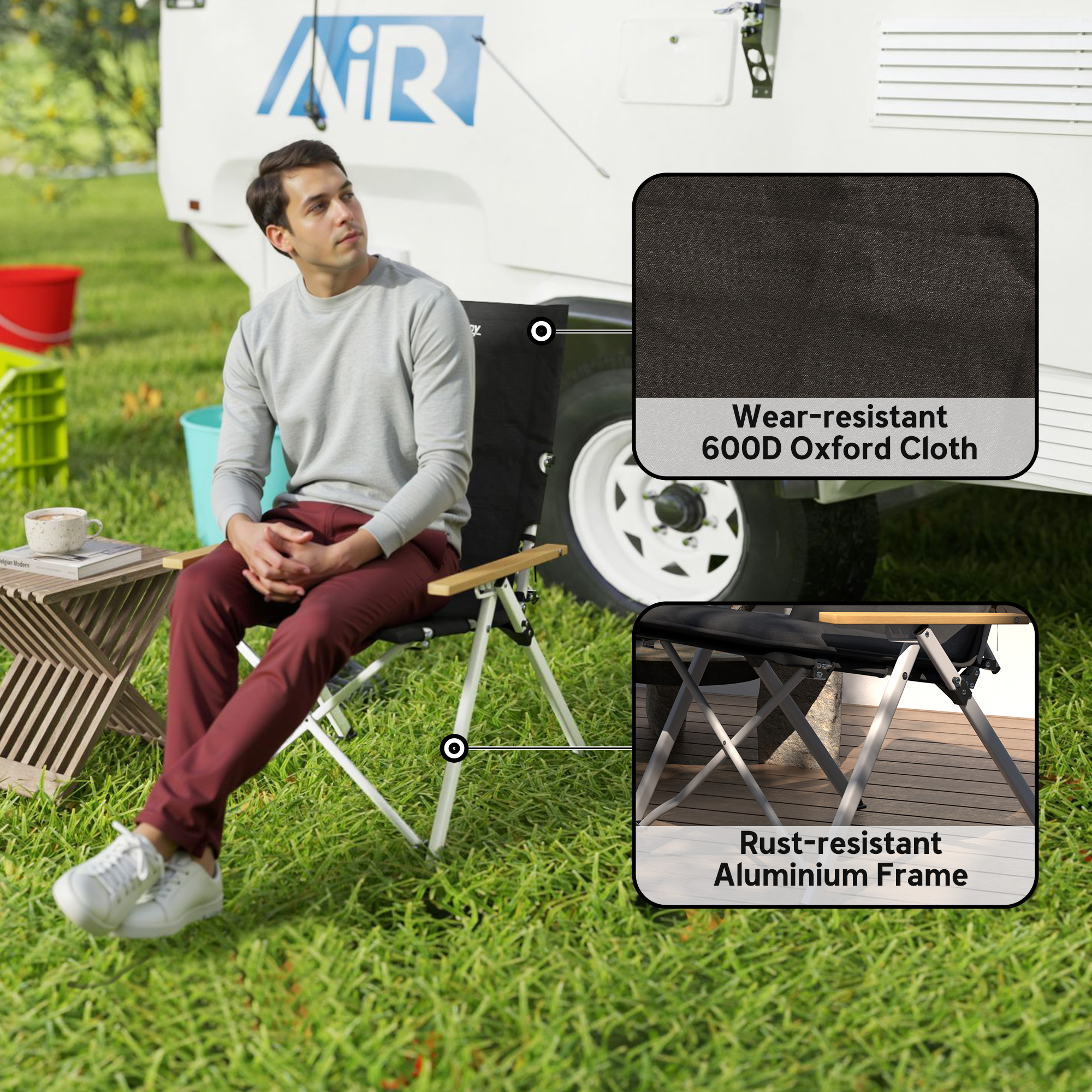 - Material: Aluminium, Beechwood, Oxford Cloth (100% polyester fibre)