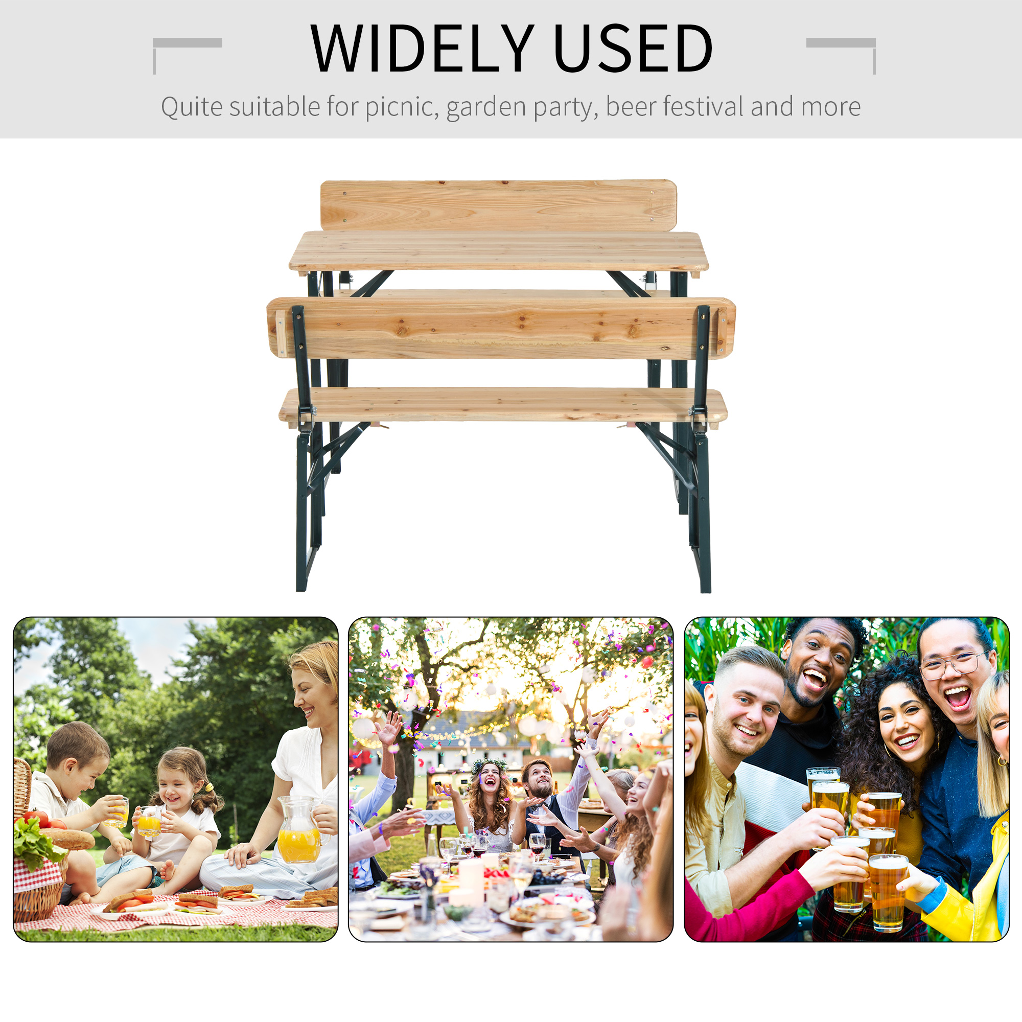 - Compact and fold-out table and benches are easy for transport and storage