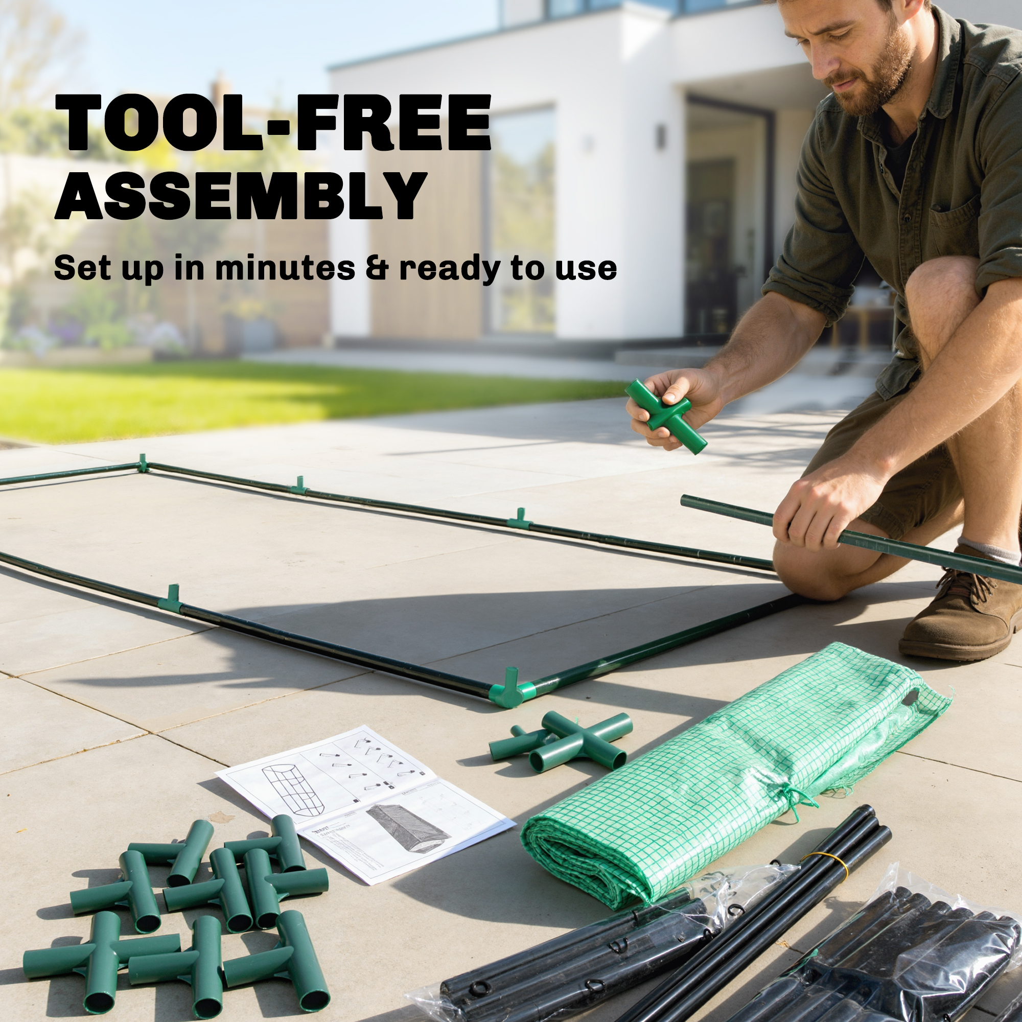 - Protective plastic cover, with 10cm extended edge to weight down/dig into soil