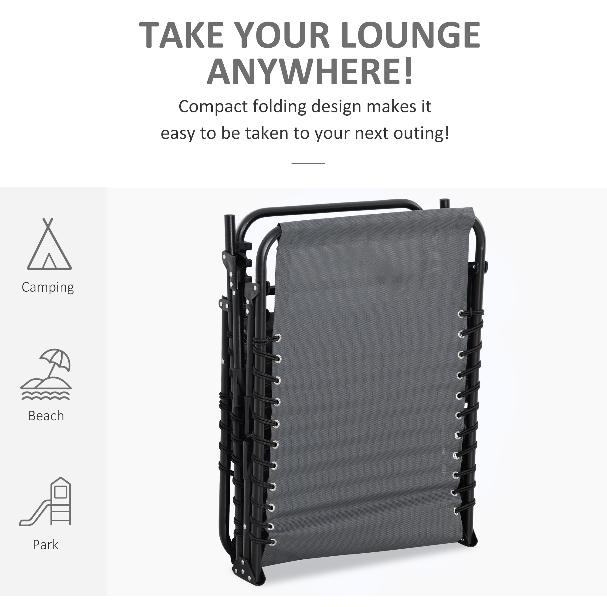 Lounge outdoors the classic way - go for this folding recliner from Outsunny. Sturdy steel frame supports up to 120kg. The back can be adjusted to five positions to relax at a position you want. There's a mesh fabric seat stretched on the frame to hold your body, with a removable pillow on the top to support your head/neck and keep it comfortable. Easily folded into a compact size, making it easy to carry and store. A perfect piece to put in your car for those weekend beach trips.