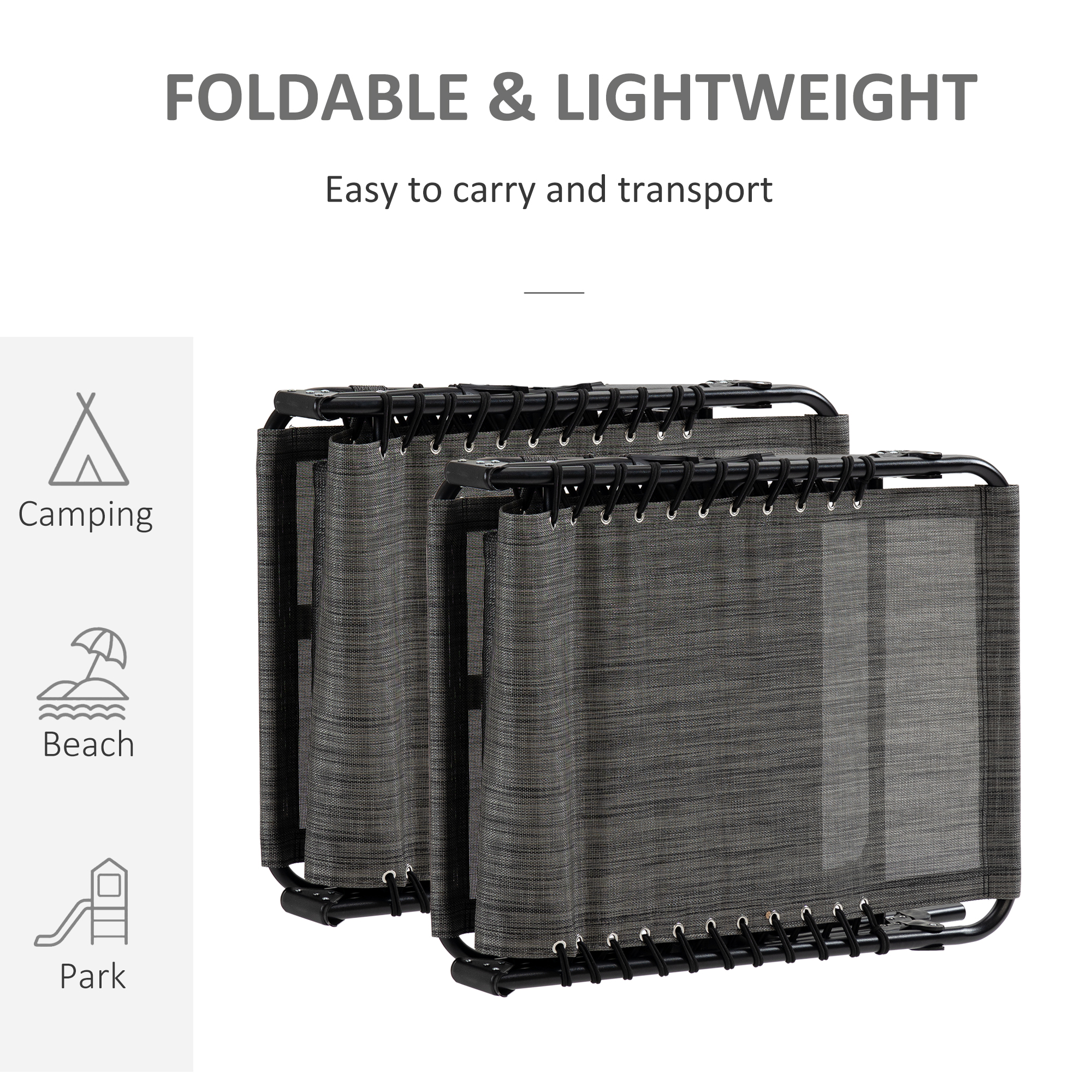 Lounge outdoors the classic way - go for this folding recliner from Outsunny. Sturdy steel frame supports up to 120kg. The back can be adjusted to five positions to relax at a position you want. There's a mesh fabric seat stretched on the frame to hold your body, with a removable pillow on the top to support your head/neck and keep it comfortable. Easily folded into a compact size, making it easy to carry and store. A perfect piece to put in your car for those weekend beach trips.