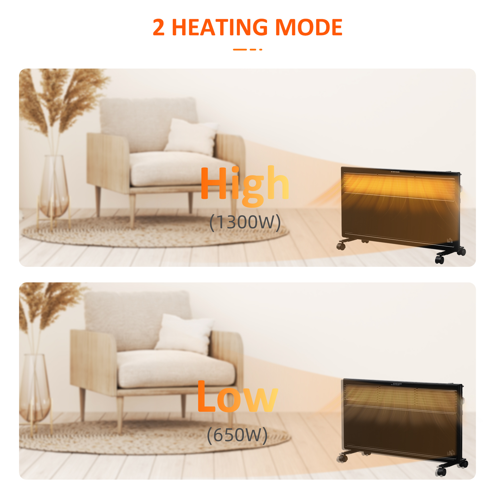 Keep warm with this mobile heater from HOMCOM. Comes with 650W and 1300W heat setting, so you can change it depending on how cold you are - perfect for transitioning from Autumn into Winter. The heater for home has wheels and a handle, so you can roll the unit easily from room to room - with the 1. 5m cable allowing you to stretch across the room easily. Set between 7-35℃, so your space is kept perfectly heated to your ideal temperature.