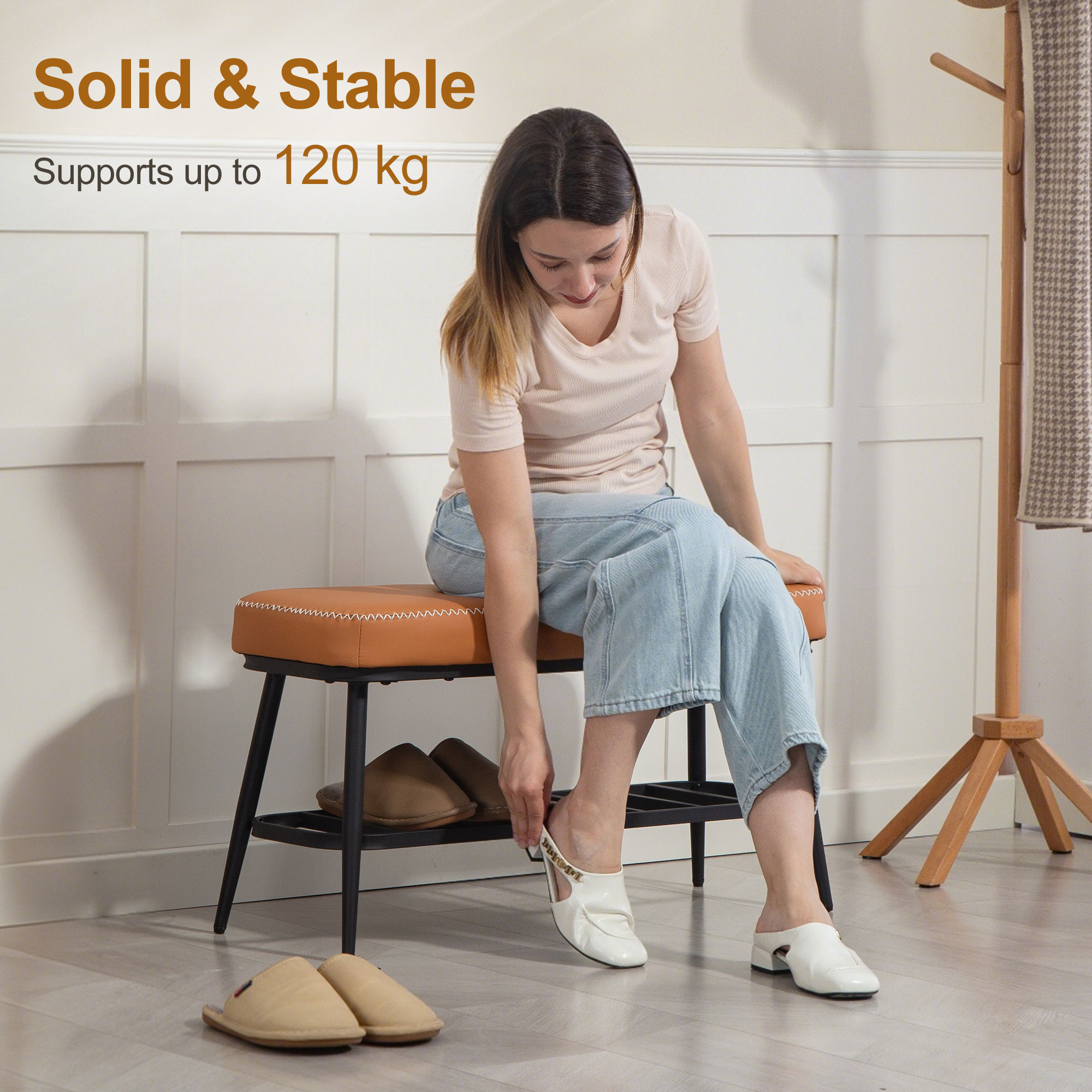 Arriving home to a cluttered entryway can be stressful. Imagine the daily struggle of finding shoes or balancing precariously. The HOMCOM shoe bench transforms this. Its plush 7 cm cushion offers a cosy spot to unwind after a long day. This HOMCOM shoe storage bench supports up to 120 kg, ensuring confidence with every use. Plus, the spacious shelf of this hallway bench keeps four pairs neatly organised, creating a serene, clutter-free entrance.