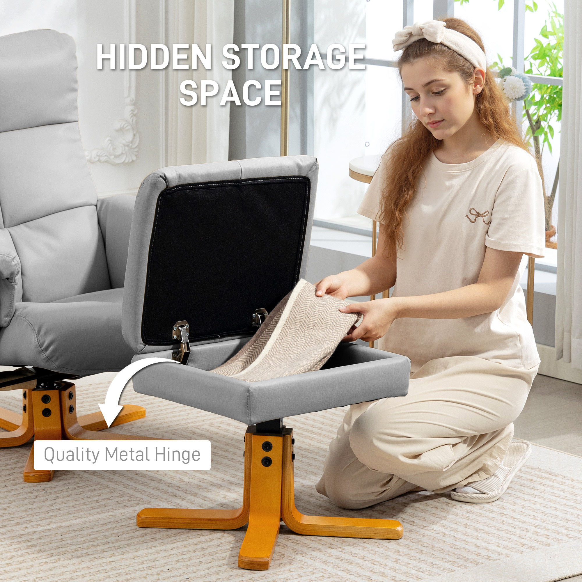 Find your relaxing moment, every time, with ease: this recliner and ottoman duo from HOMCOM. Thick padding all over for comfort, with a wooden base for support. The 145° reclining back, paired with the footrest to lift your body and elevate. Ottoman comes with hidden storage - a place to keep small essentials near.