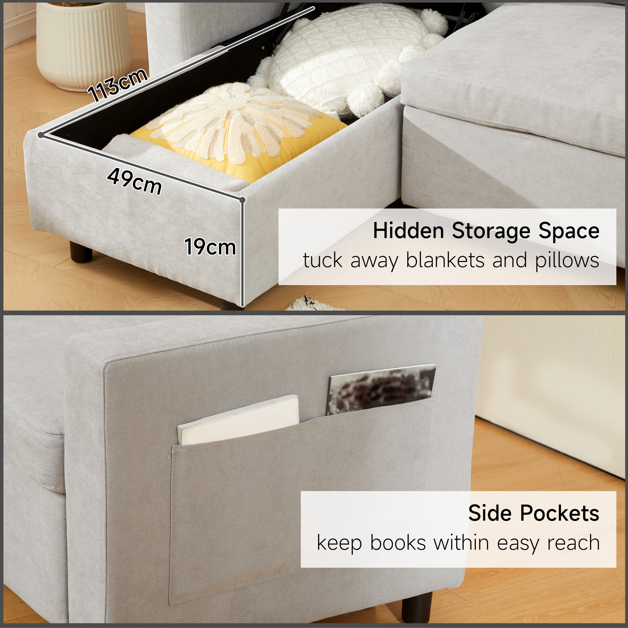 This HOMCOM three seater sofa bed is here from day to night. Convert from a loveseat into a double sofa bed with a simple pull. Plus, utilise the small storage under the chaise, suitable for blankets and more. Whether for comfortable everyday lounging or accommodating overnight guests, this L shaped sofa bed does it all.