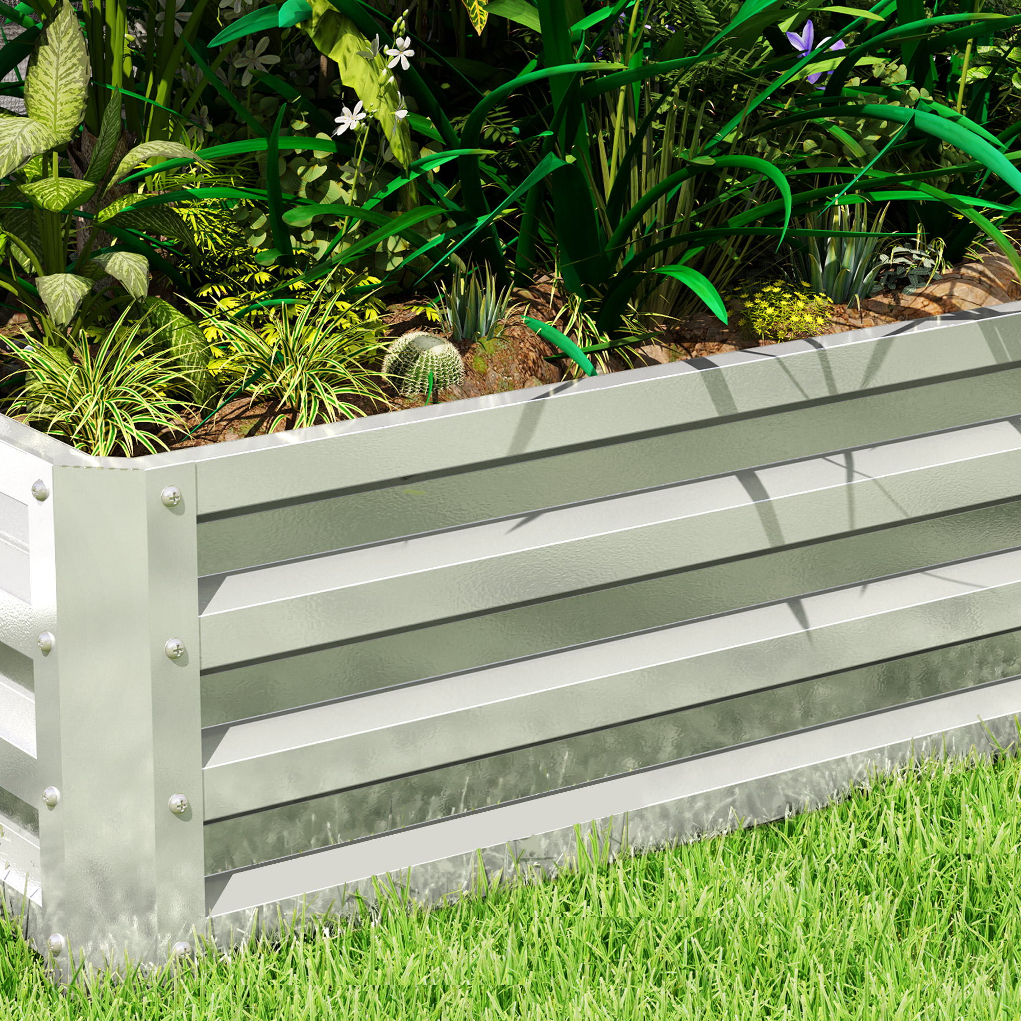 Garden planters offer an open and protective way to grow; this season and beyond, do it with this Outsunny piece. Made from steel, each piece is strong; the galvanised finish means extra strength, with suitability for use all year round. The high-wall design offers protection inside, and with a no-floor panel, plants, flowers and other vegetation will have direct contact with the soil for the most effective growth. Simply set up and go.