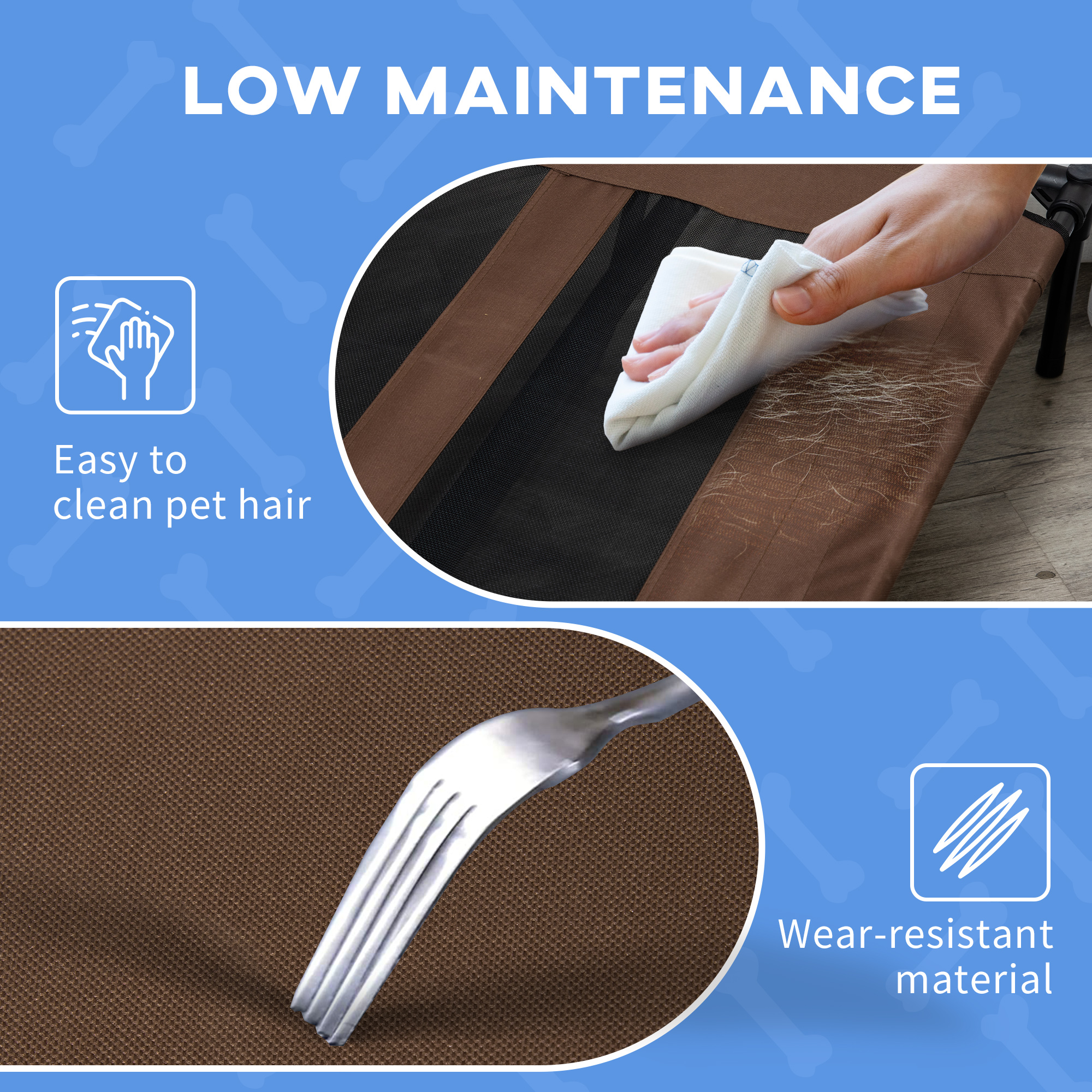 A comfy space for pets is important – they can get that with this PawHut dog camping bed. A raised design lets air flow on all sides and underneath, keeping your pet nicely cool as they relax. Made with a steel frame, ensuring they're properly supported, whilst the breathable mesh will have them feeling snug. Frame is powder-coated for extra strength and durability, this portable dog bed is suitable for outdoors. The outdoor dog bed comes with a bag and is easy to disassemble.