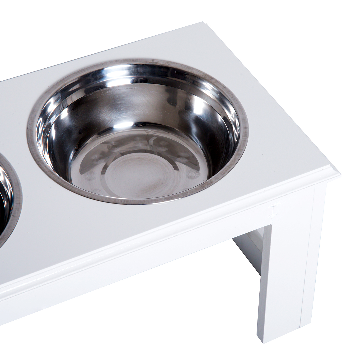 Make meal times easier for your pets with this cat bowl with stand from PawHut. With an MDF base that has been built to provide years of use, it features two round stainless steel bowls. Robust, hygienic and dishwasher safe, both bowls are easy to look after and safe for your pets to use and are great used together for both food and drink. In an elevated design, the base helps make eating cleaner and easier for your pets, aiding digestion and putting less strain on the neck.