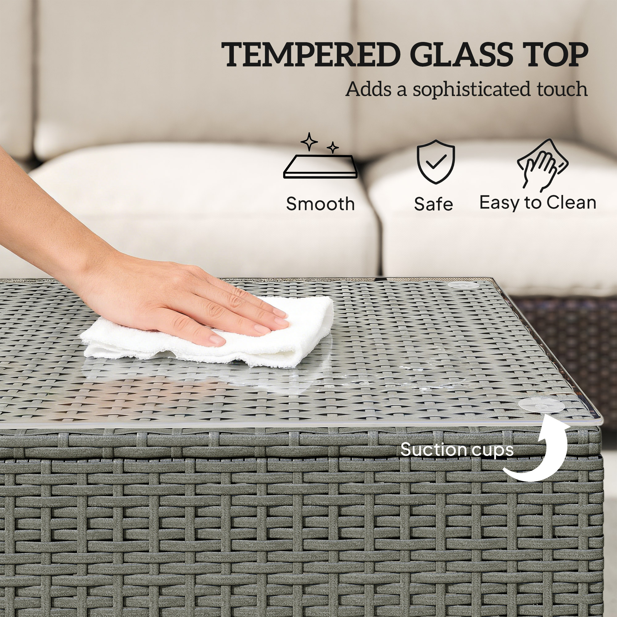 Bring classic garden style into your garden with this rattan coffee tale from Outsunny. Using metal for a frame that is tough and stable, it is crafted into a large design. It is great when you don't want to move from your coveted spot to relax outdoors. Wrapped over the frame is PE wicker rattan – a unique colourway that oozes style. Resistant to mild weather damage, it helps prolong the lifespan of the table, with a tempered glass top on the table for a sophisticated finish.
