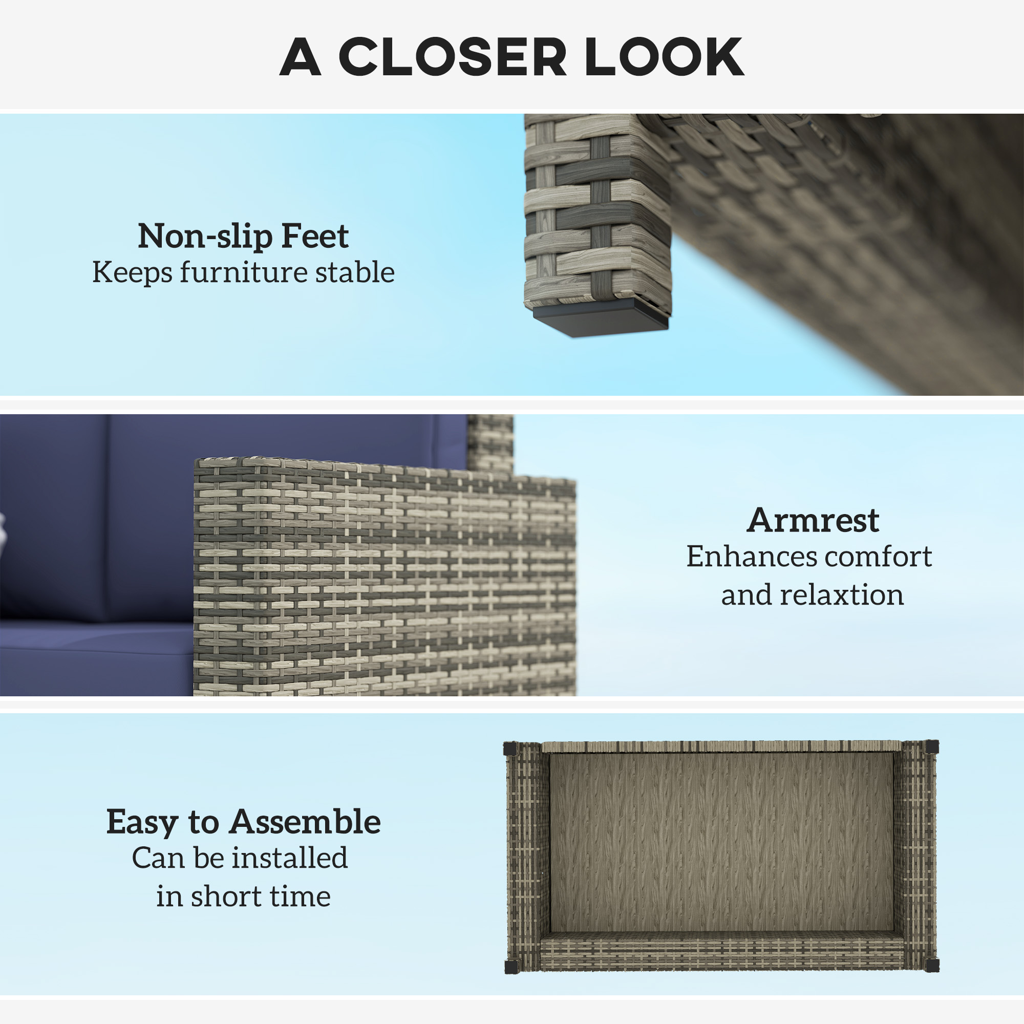 - Material: Steel, PE Rattan, Polyester