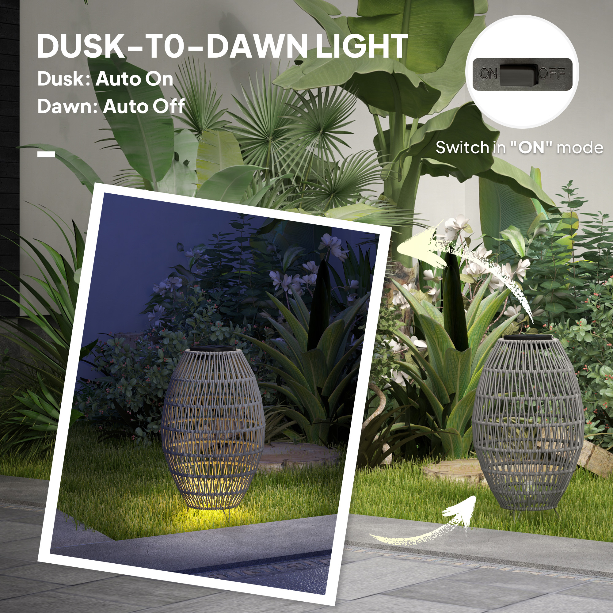 Illuminate your evenings with the Outsunny outdoor rattan solar lamp, a chic garden lantern that charges by day and brightens by night without extra batteries. The elegant rattan outdoor light has a soft 6-lumen glow and 2500 K colour temperature to create an inviting ambiance for any outdoor gathering. Fully solar-powered garden light - an effortless way to light up paths or driveways with a welcoming glow. Five hours full charge = eight hours of light.
