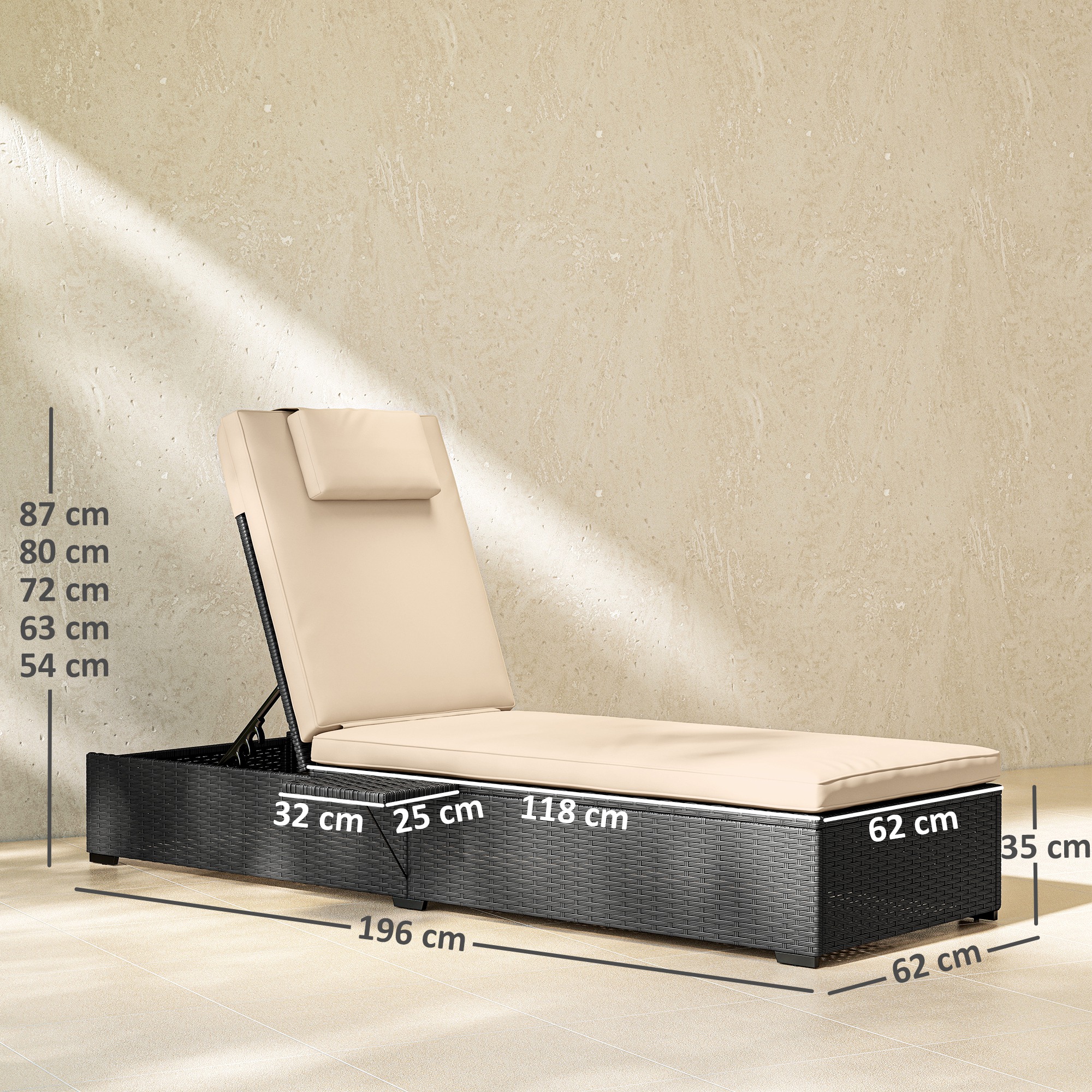 Relax in your garden with this Outsunny rattan lounger, Enjoy customisable comfort with the five-position back. The soft padded cushion keeps you comfortable. The side table offers a handy holding spot, so you don't have to move once seated and comfortable. Sun lounger has galvanised steel frame with powder coating means a strong core, wrapped in stylish and protective plastic wicker.
