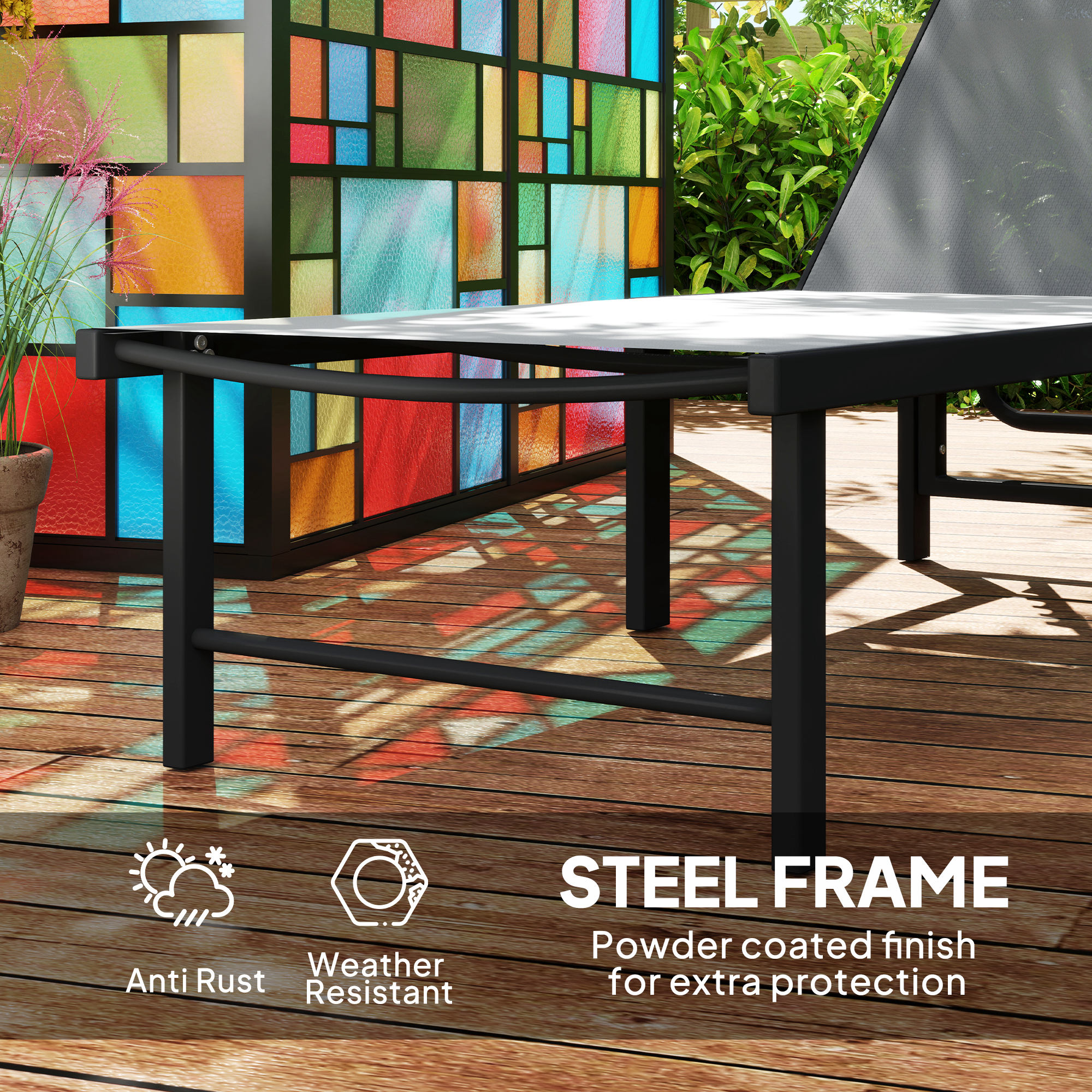 Lay the day away with your favourite way - grab this Outsunny garden sun lounger. The backs of the reclining sun lounger can be set to five different positions - lie back to a position you want. The breathable texteline seat panels hold you comfortably and keep you cool. The powder coated steel frames mean a strong, supportive core.