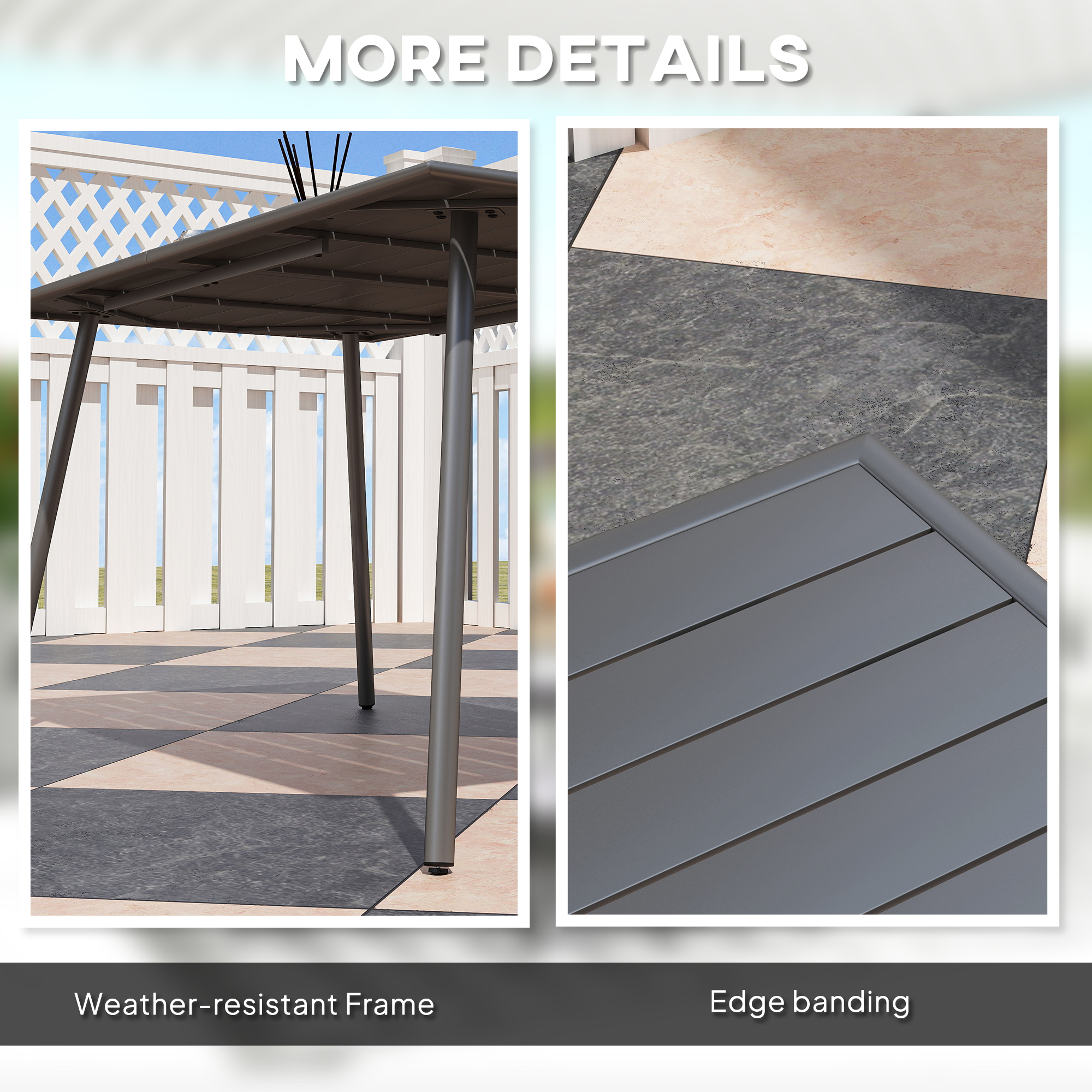 Transform your garden gatherings with the Outsunny garden table, designed to comfortably seat six. The slat-style tabletop prevents water build-up and simplifies cleaning, while the rust-proof powder-coated steel frame ensures longevity. Its chic, simple design complements any garden decor, making it a stylish addition to your patio or outdoor dining space.